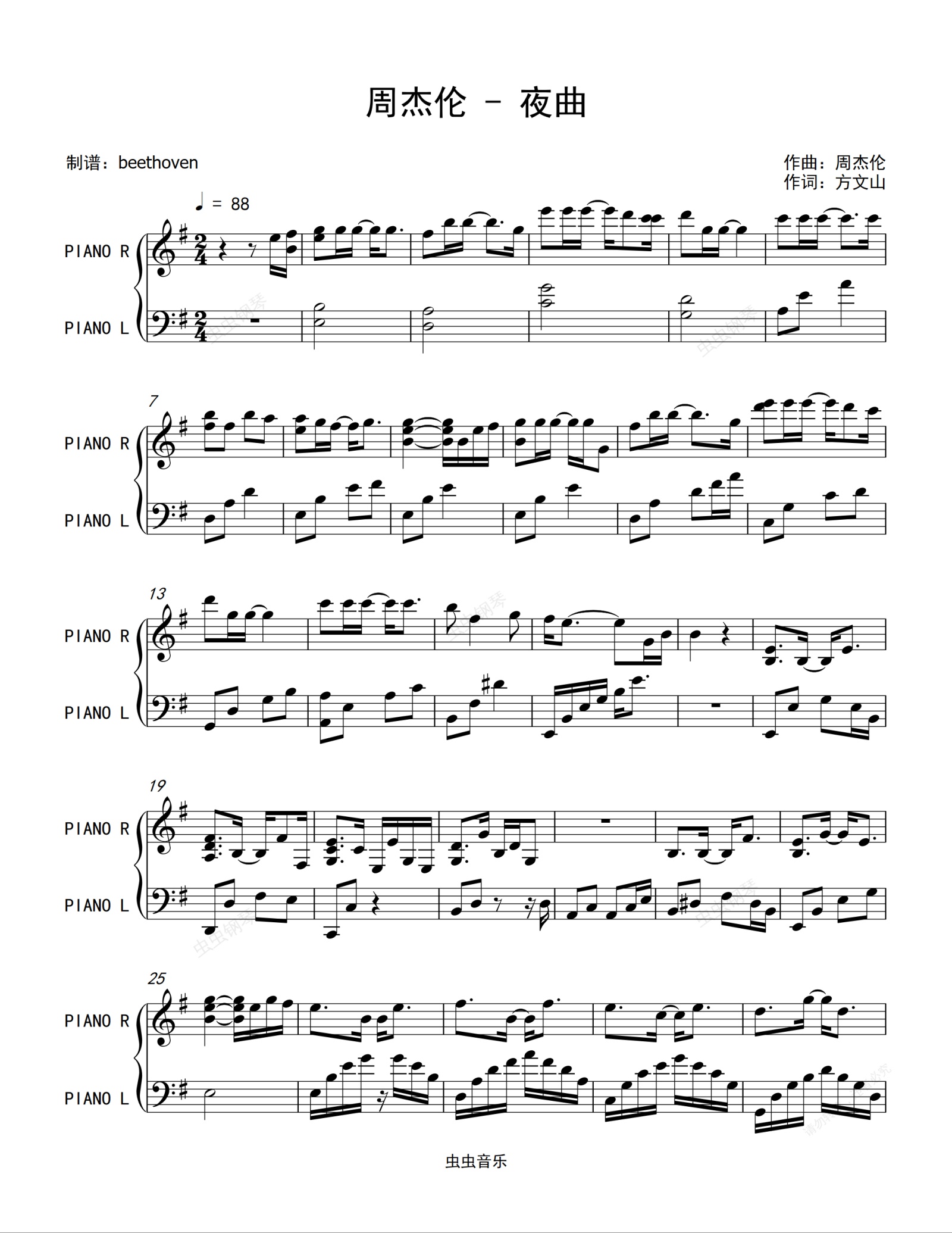 钢琴谱:夜曲-周杰伦-原版钢琴