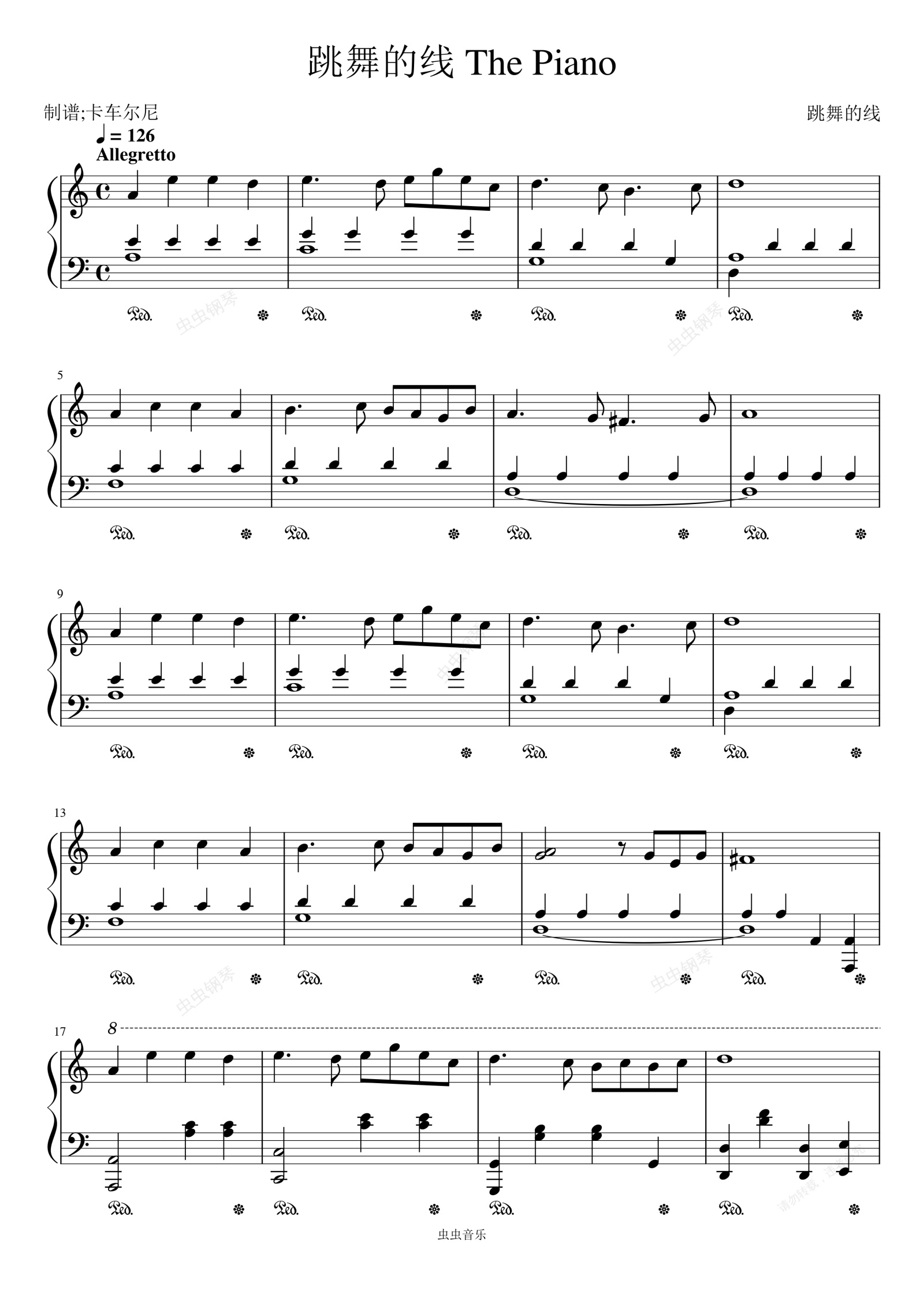 钢琴谱:跳舞的线-钢琴 C调少升降号精简版