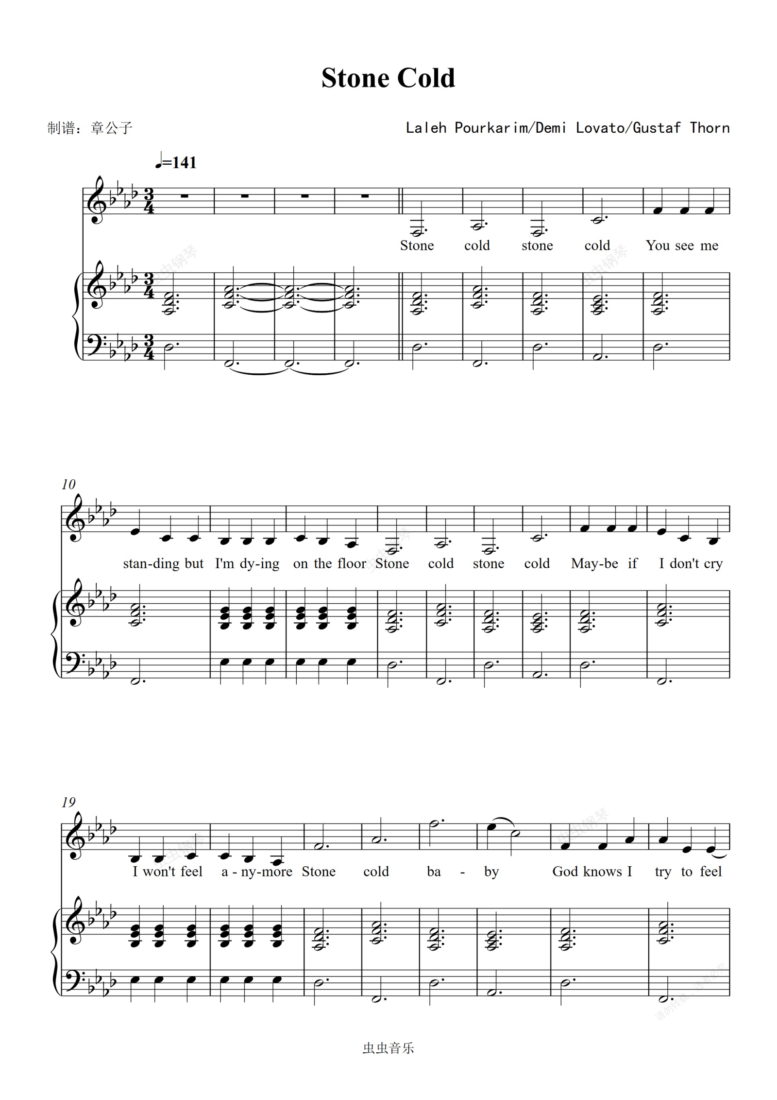 钢琴谱:《Stone Cold》live(Daneliya Tuleshova)- 弹唱谱