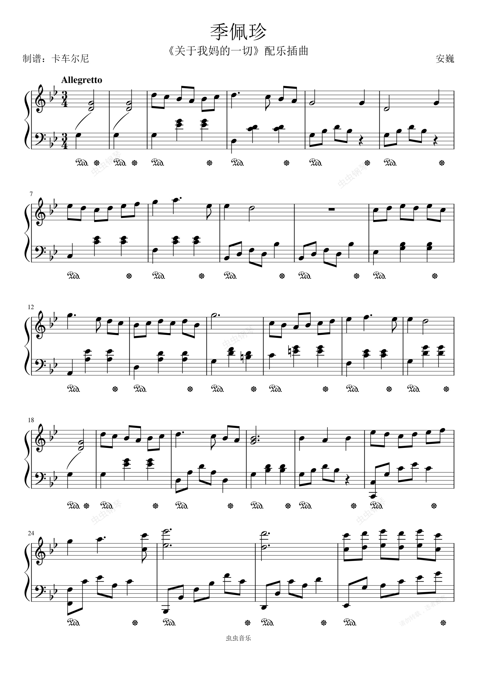 钢琴谱:《季佩珍》电影《关于我妈的一切》插曲
