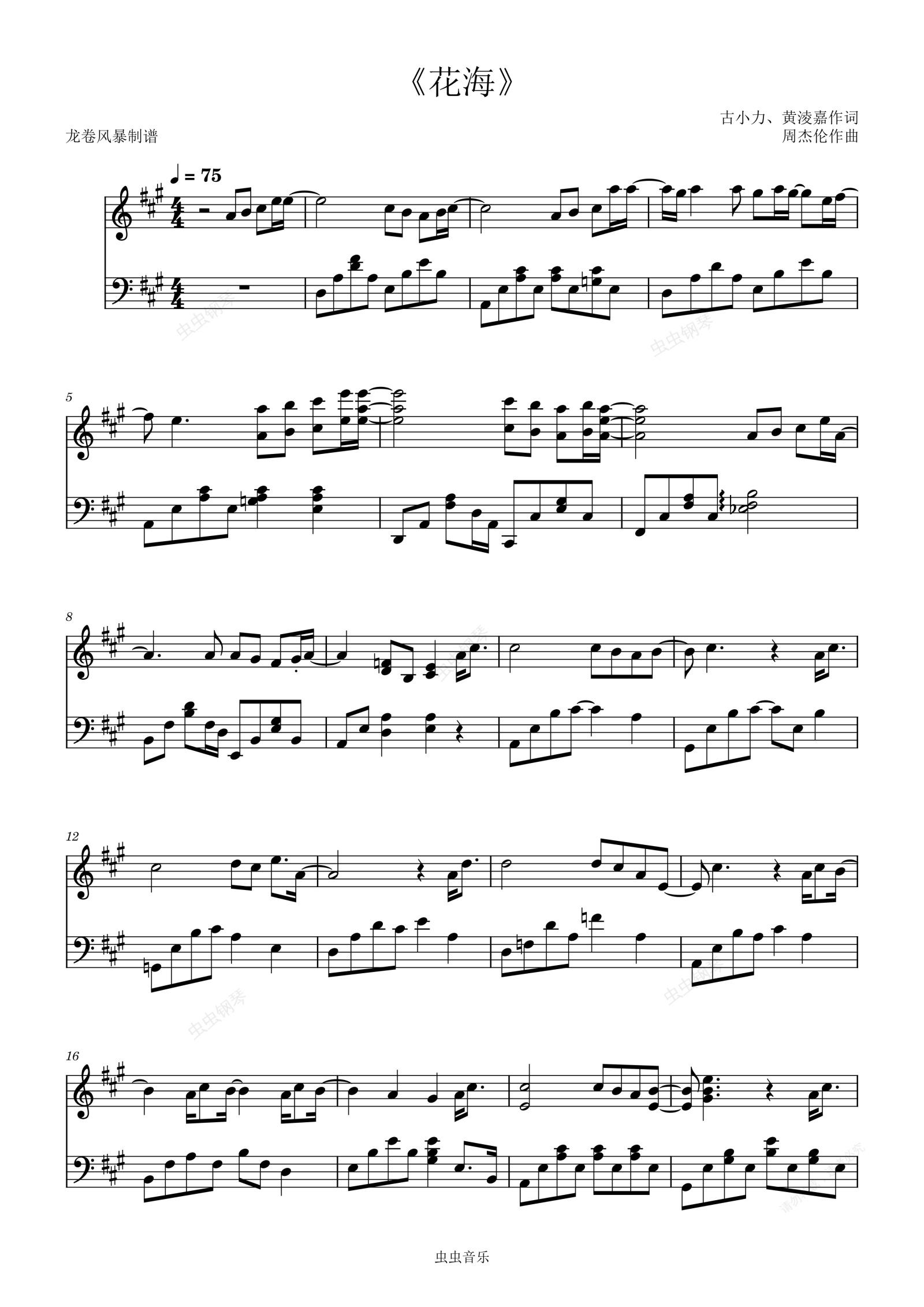 钢琴谱:《花海》周杰伦(唯美演奏版)