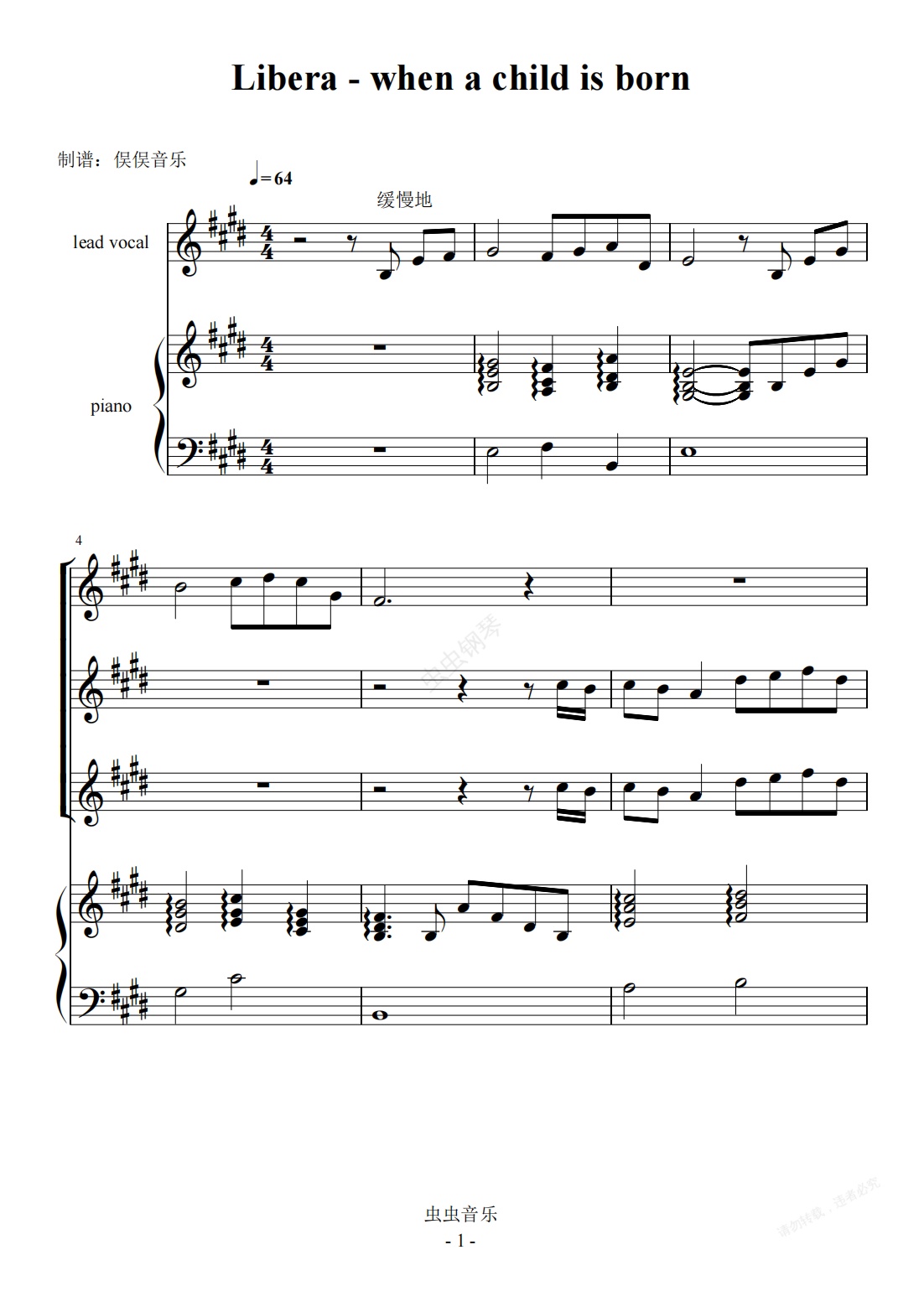 钢琴谱:Libera - when a child is born(合唱团伴奏谱)