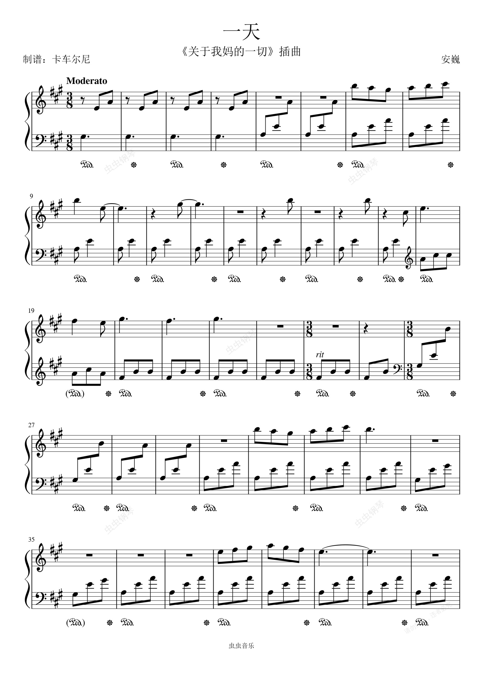 钢琴谱:《一天》电影《关于我妈的一切》插曲
