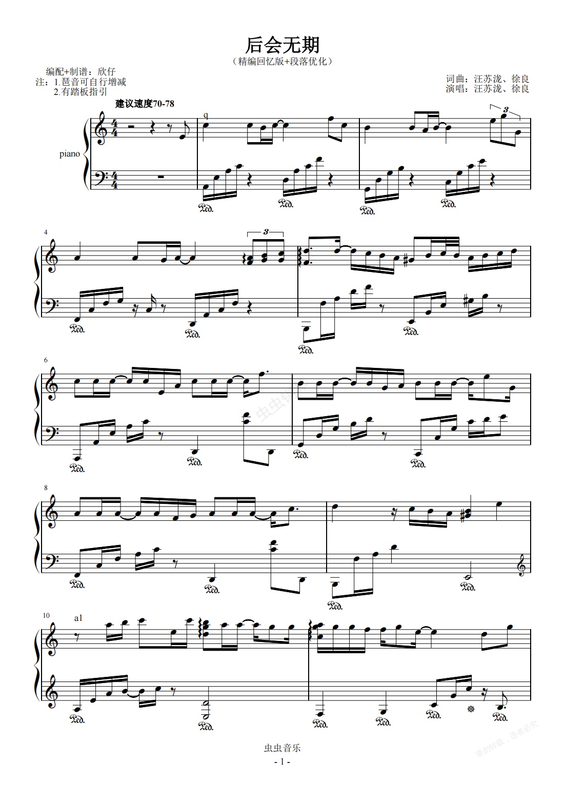钢琴谱:汪苏泷&徐良-C《后会无期》(精编回忆版+段落优化)