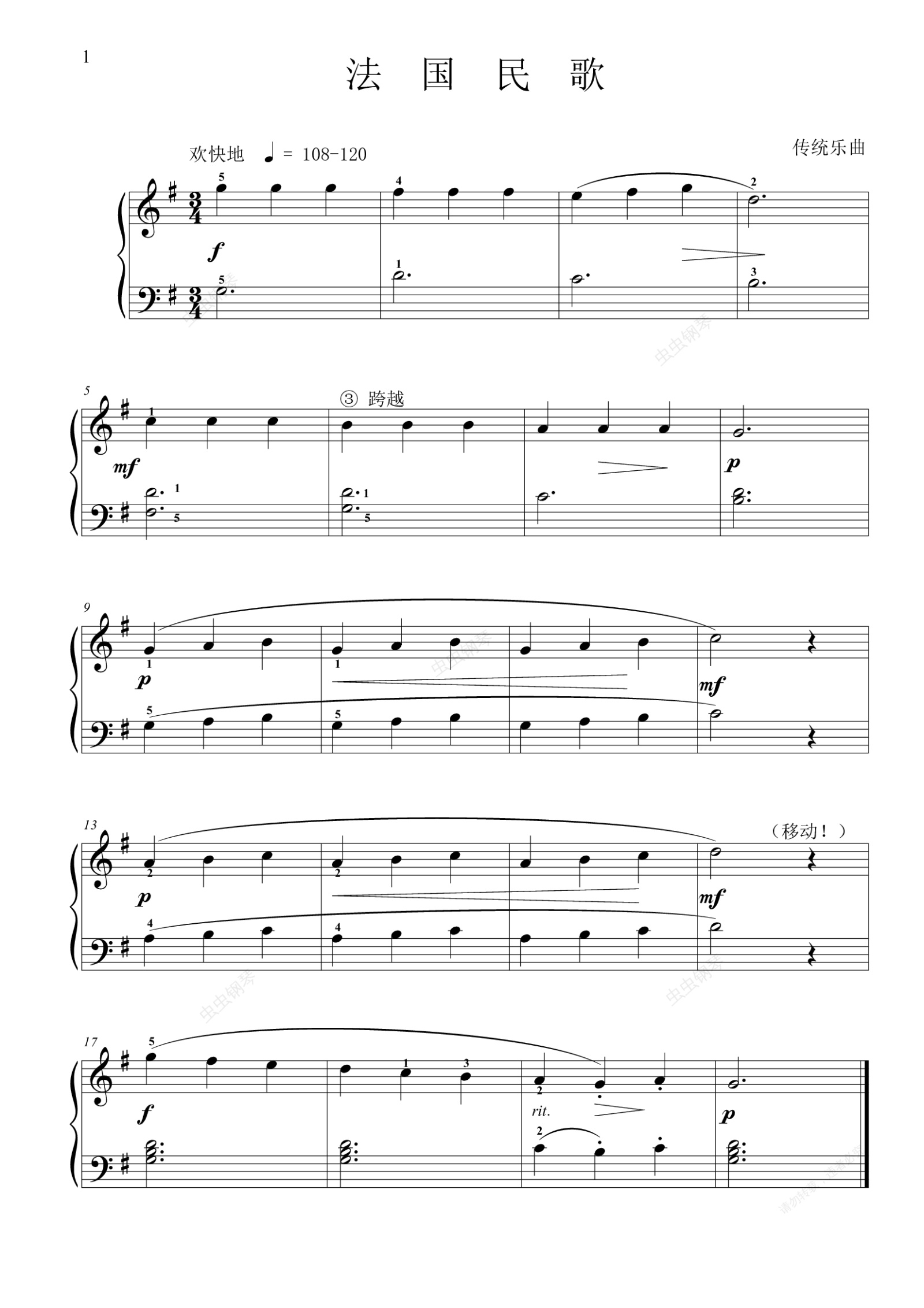 钢琴谱:5-2. 法国民歌