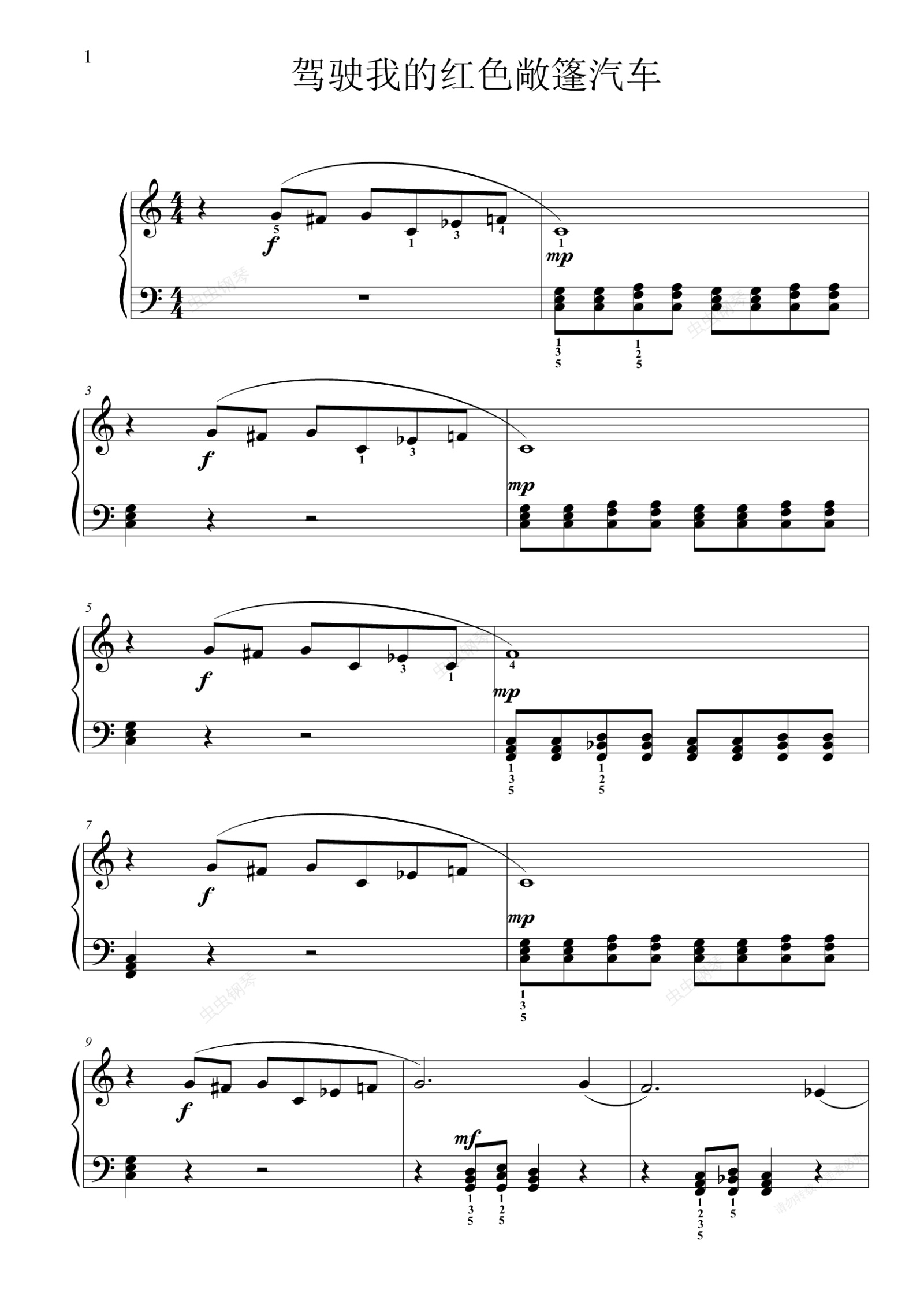 钢琴谱:9-3. 驾驶我的红色敞篷车