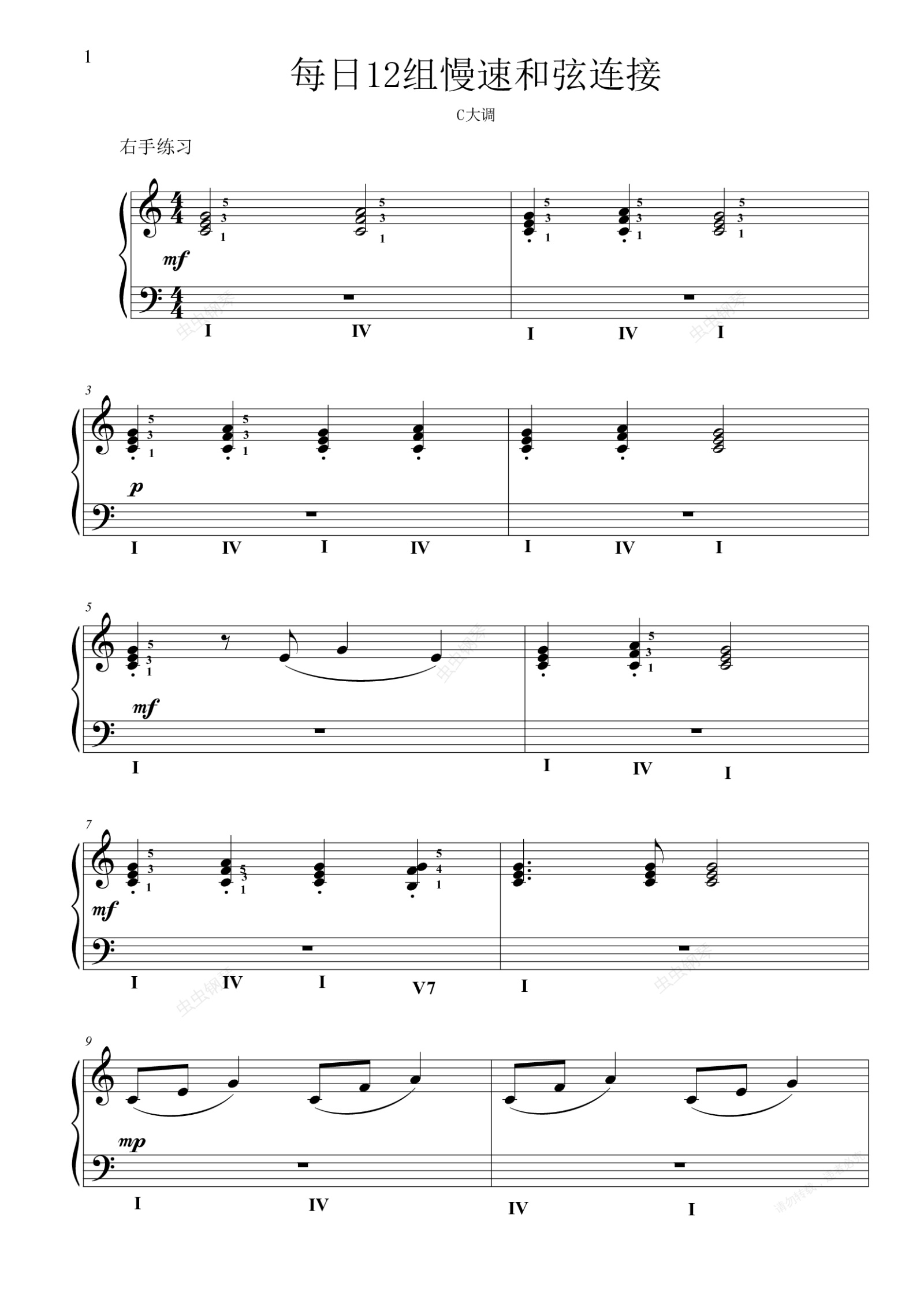 钢琴谱:9-1 每日12组慢速和弦连接(右手练习)
