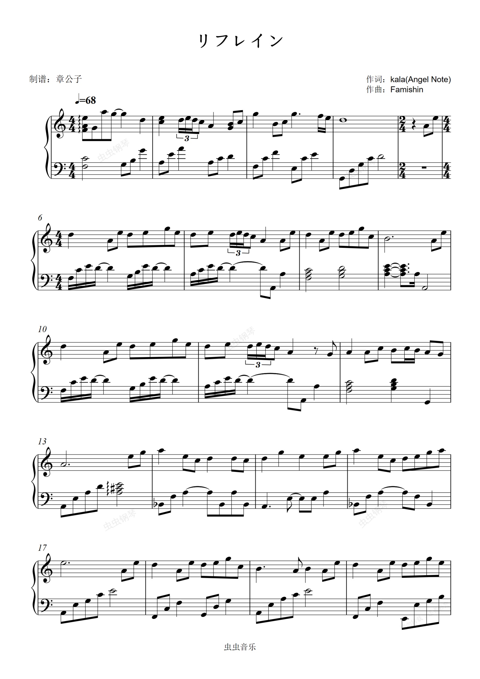 钢琴谱:リフレイン(Refrain) Game Size - 独奏谱
