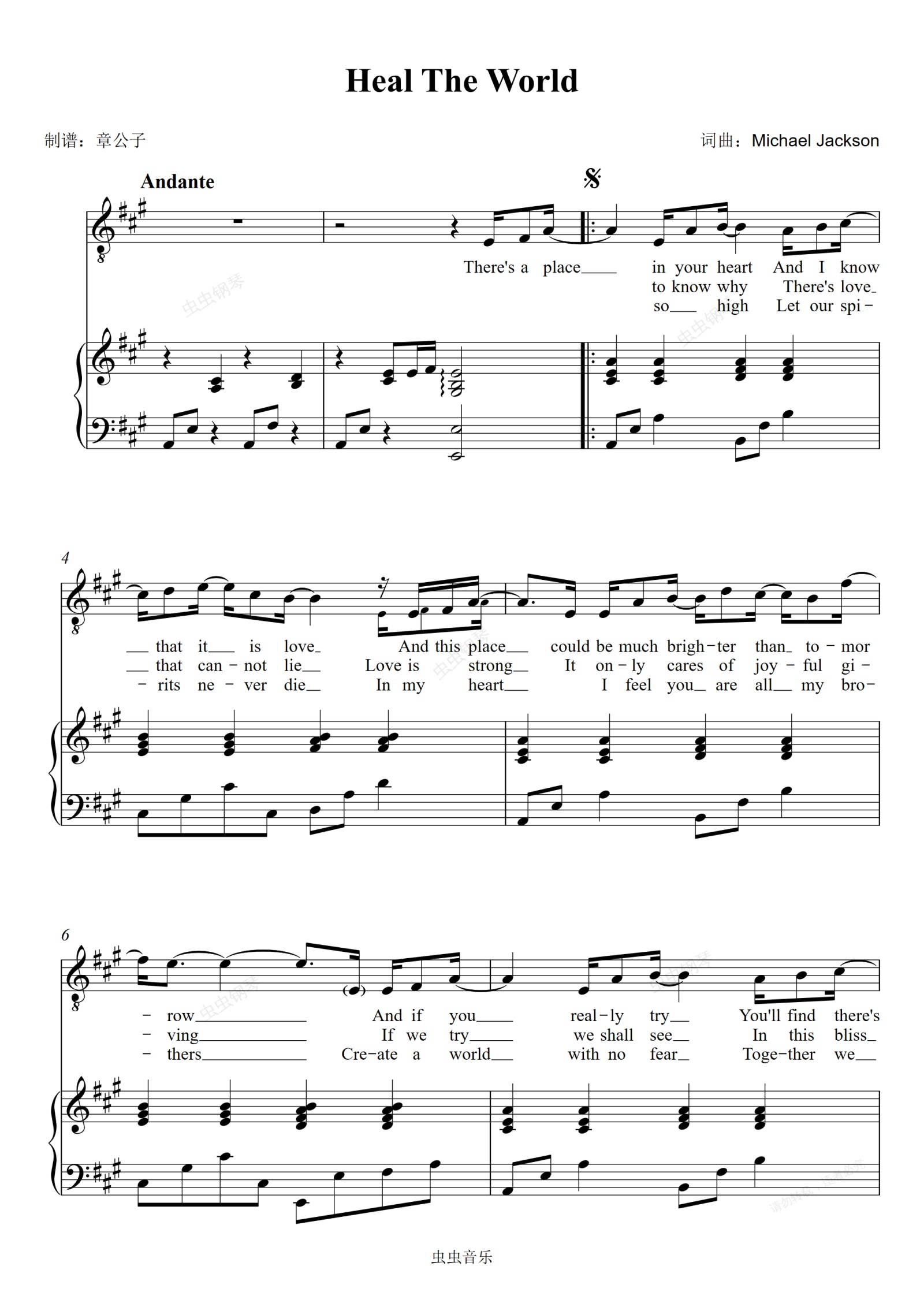 钢琴谱:《Heal the World》 - Michael Jackson 精简版和弦弹唱谱