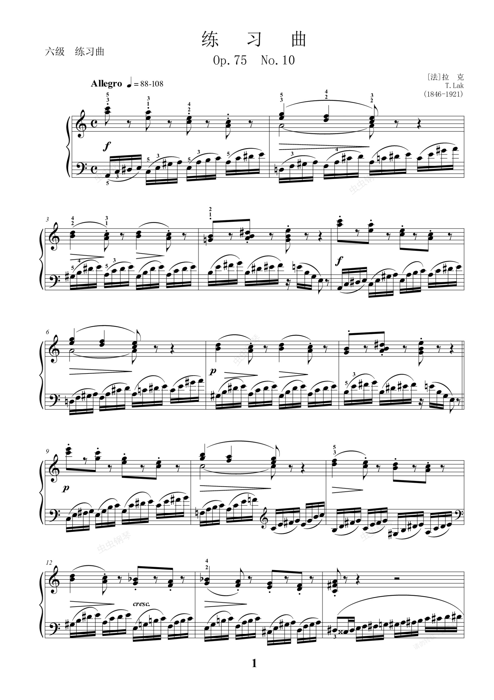 钢琴谱: 练习曲 Op.95 No.10