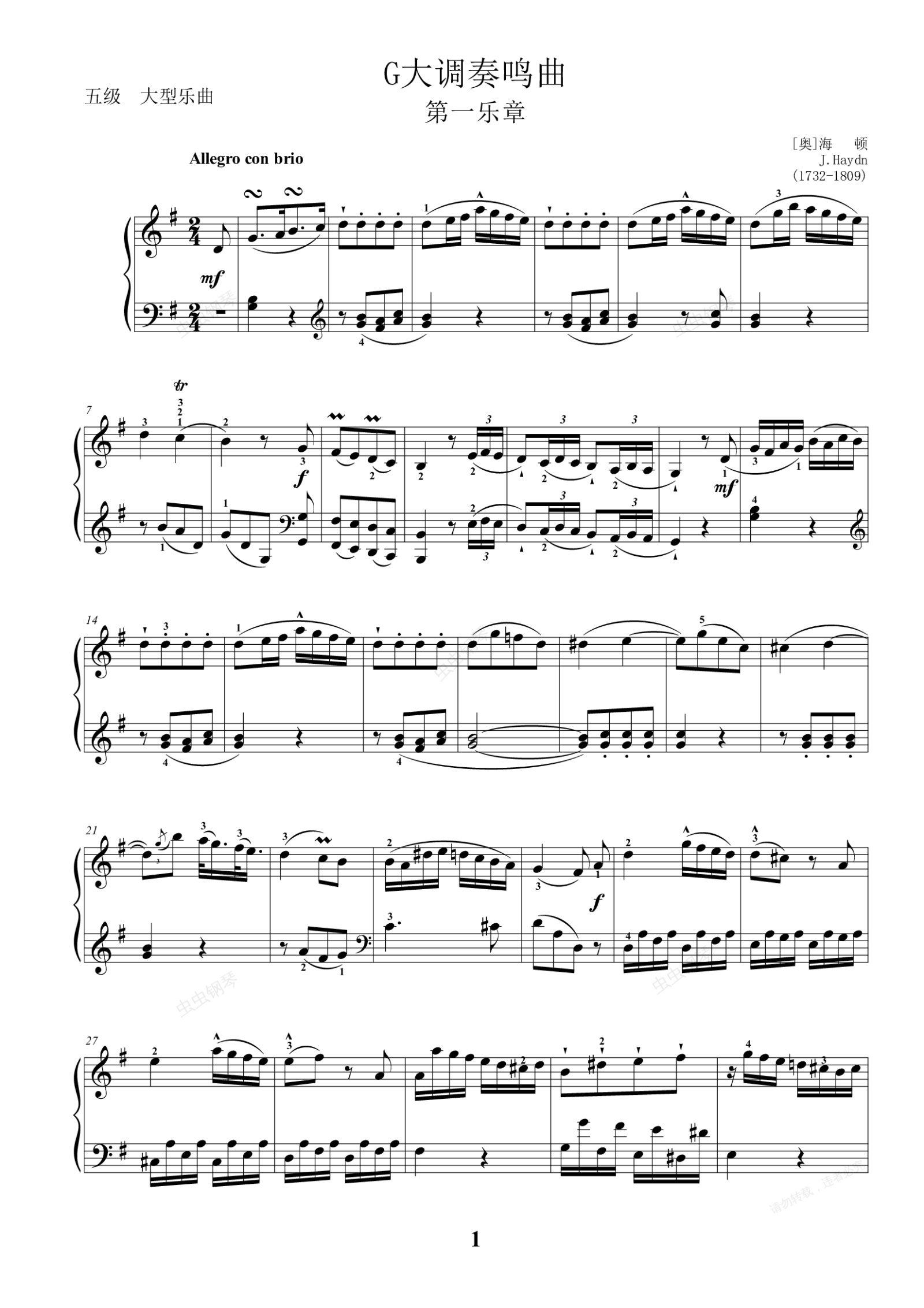 钢琴谱: 大型乐曲 G大调奏鸣曲