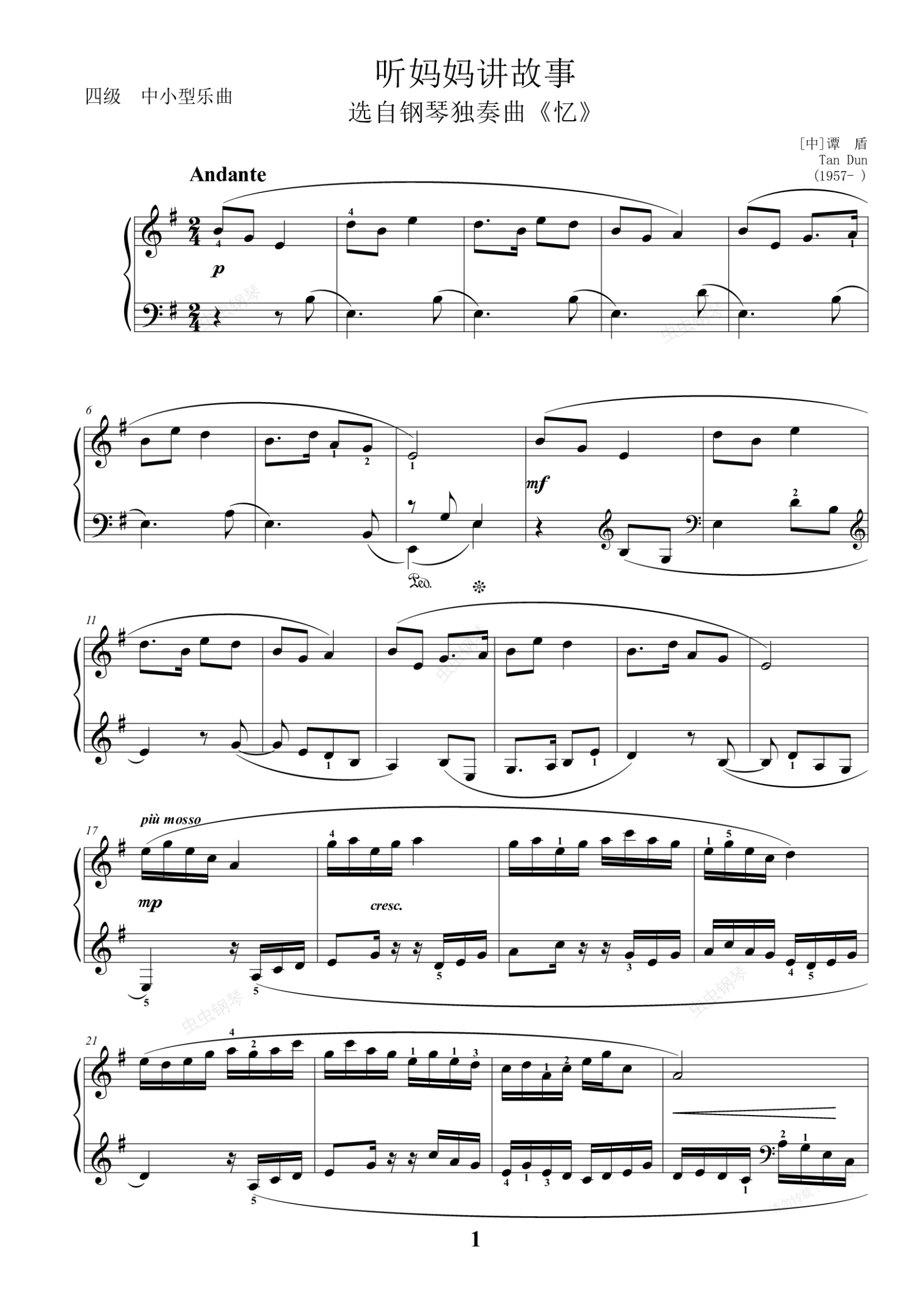钢琴谱: 中小型乐曲 听妈妈讲故事