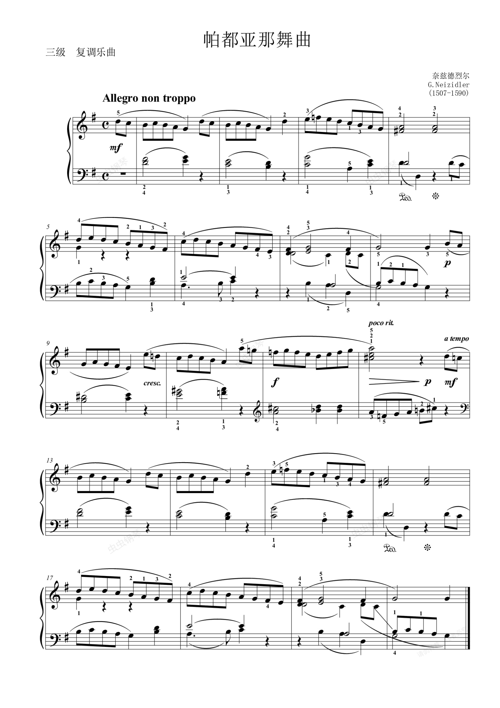 钢琴谱: 复调乐曲 帕都亚那舞曲