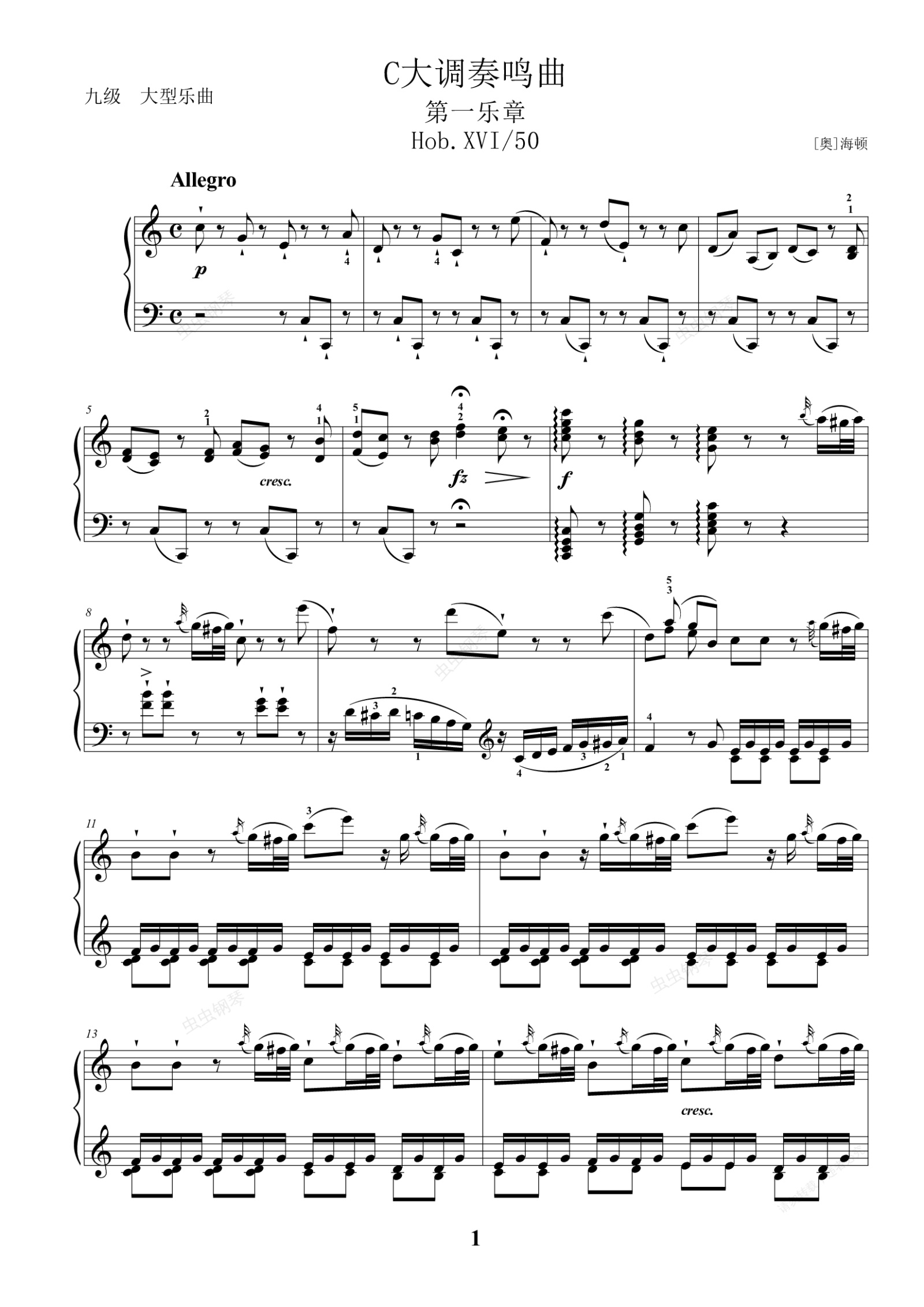 钢琴谱: 大型乐曲 C大调奏鸣曲 海顿