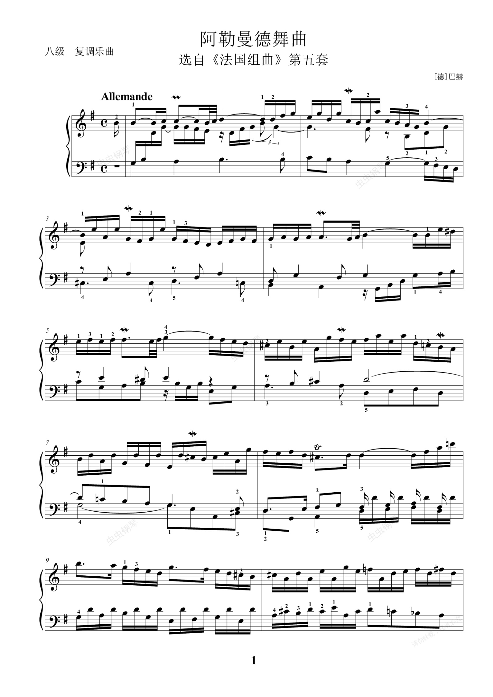 钢琴谱: 复调乐曲 阿勒曼德舞曲