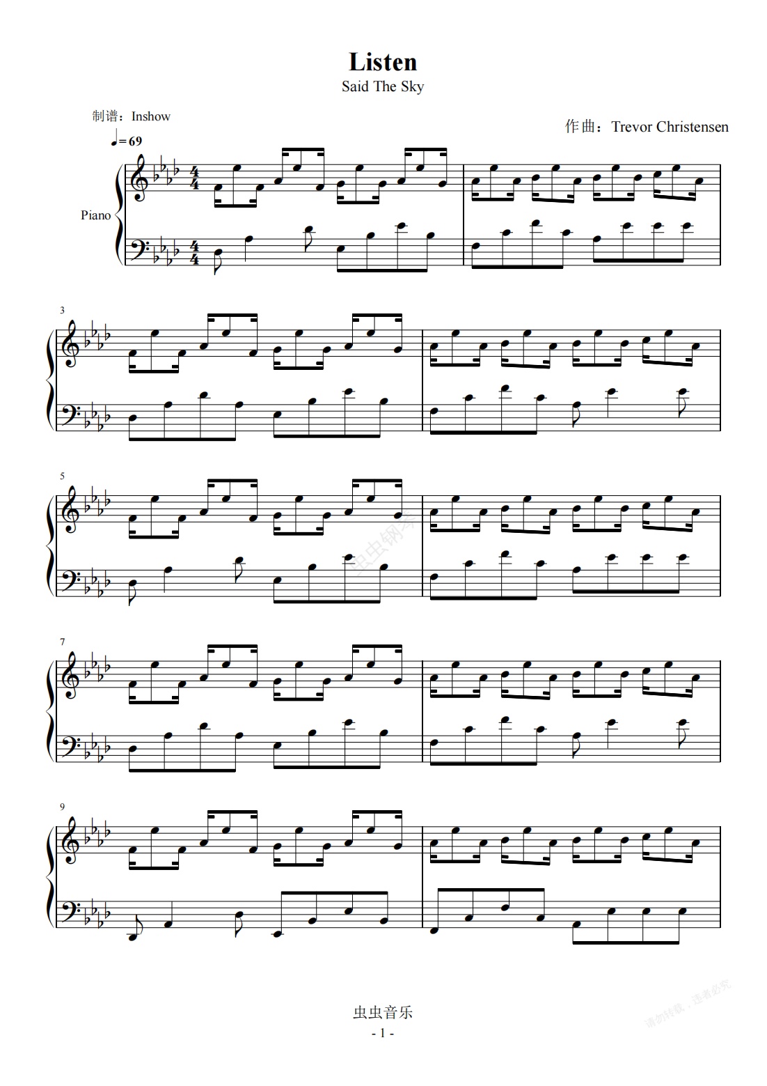 钢琴谱:Listen【原调独奏】- Said The Sky -