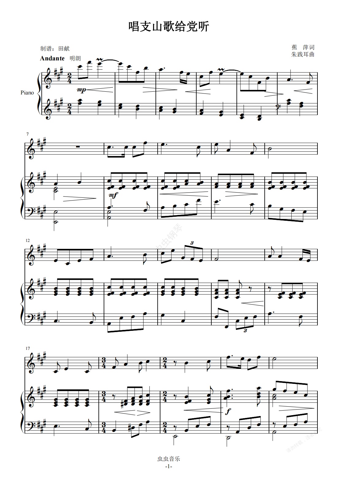 钢琴谱:唱支山歌给党听(伴奏谱)
