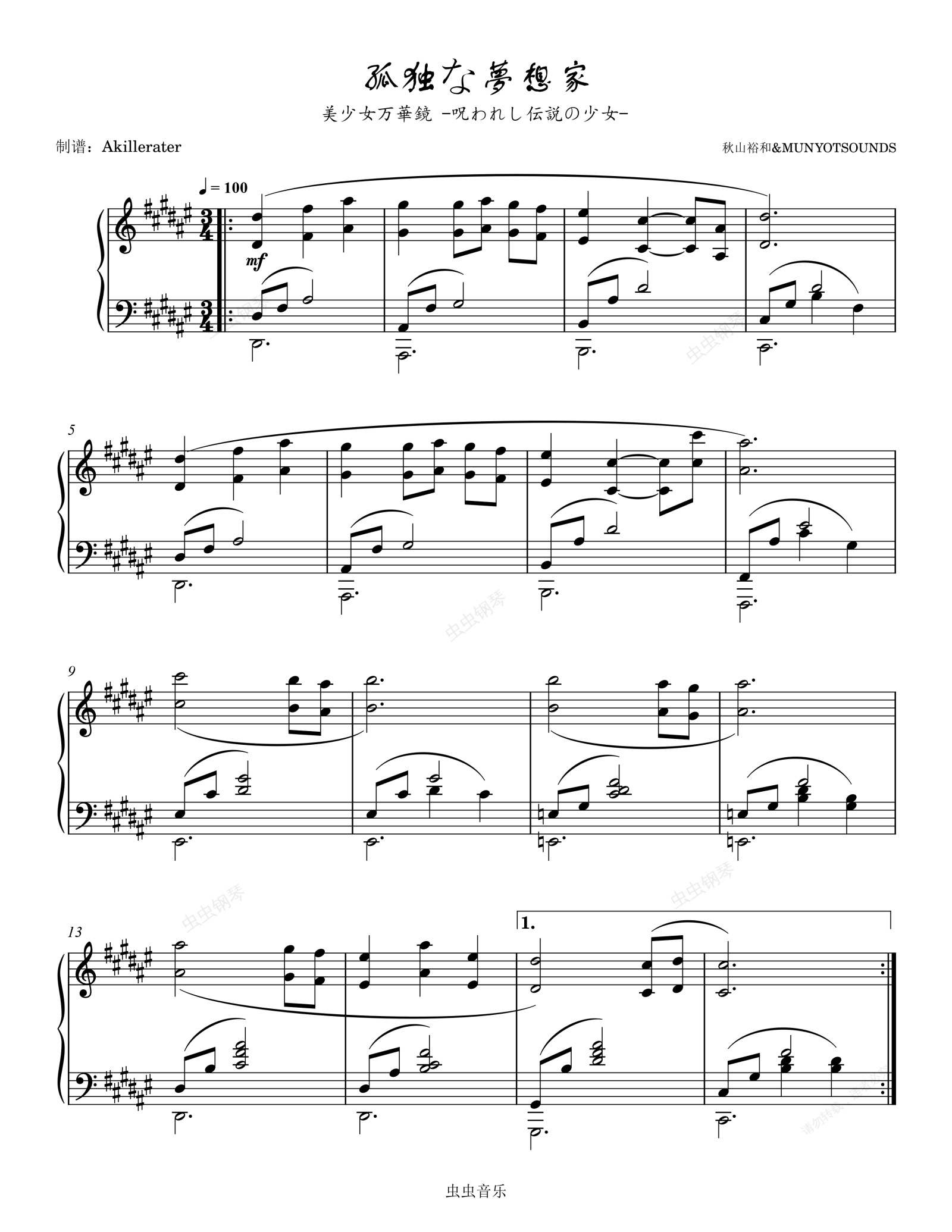 钢琴谱:孤独な夢想家《美少女万华镜 - 被诅咒的传说少女