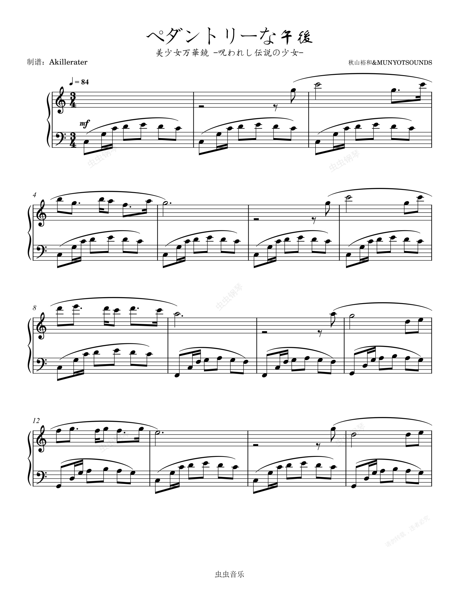 钢琴谱:ペダントリーな午後(一成不变的午后《美少女万华镜 - 被诅咒的传说少女》)