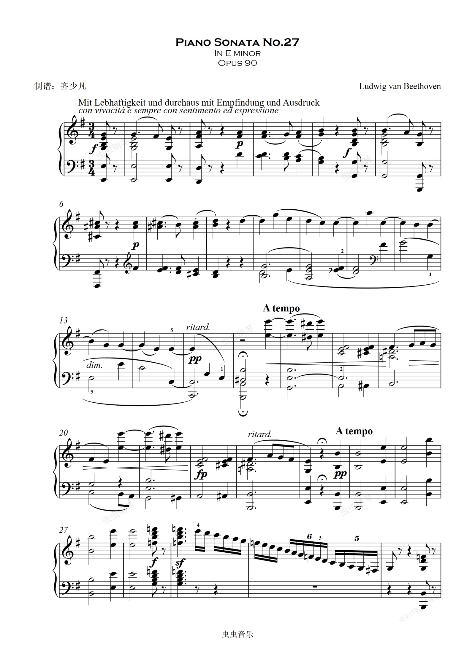 钢琴谱:第二十七钢琴奏鸣曲E小调-贝多芬钢琴奏鸣曲全集