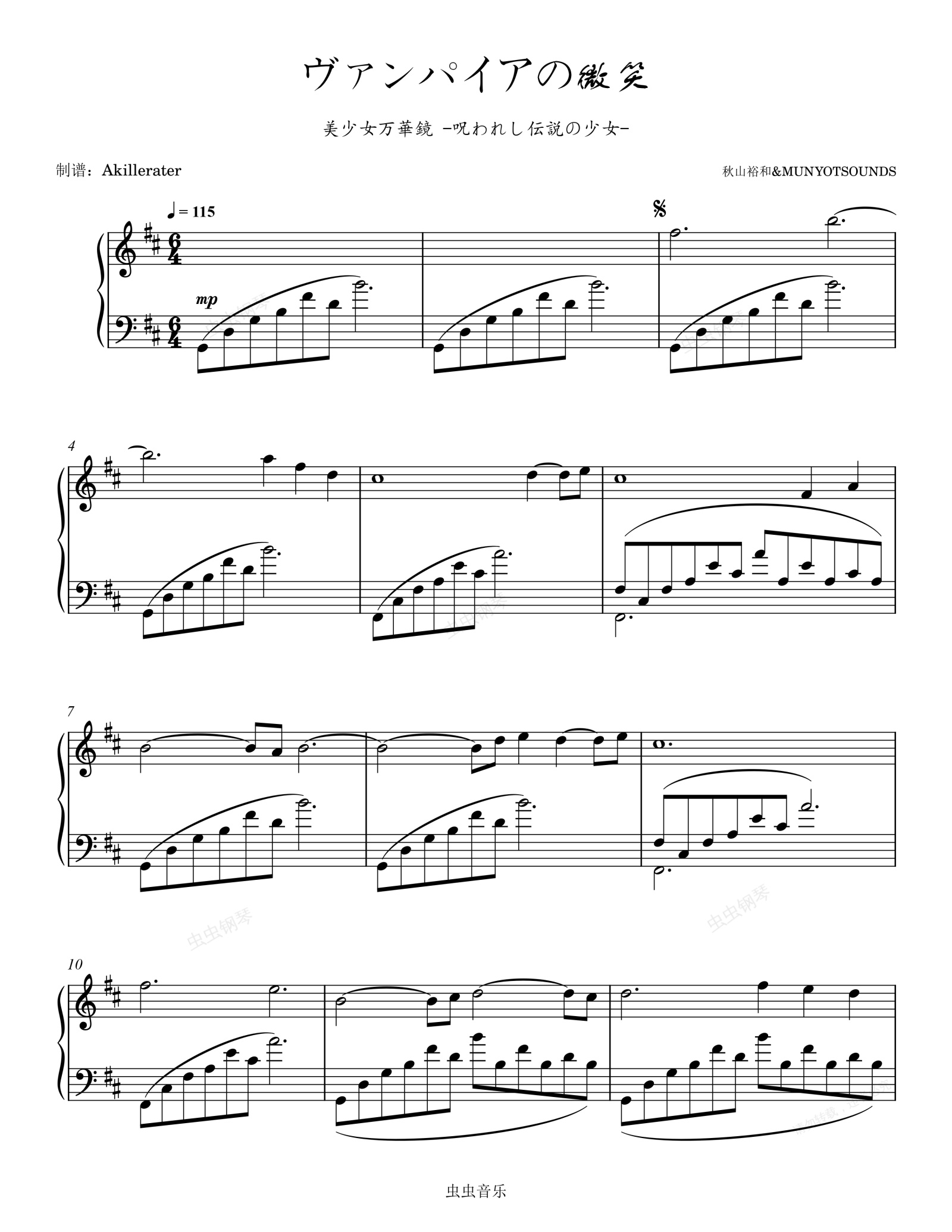 钢琴谱:ヴァンパイアの微笑(吸血鬼的微笑《美少女万华镜 - 被诅咒的传说少女》)