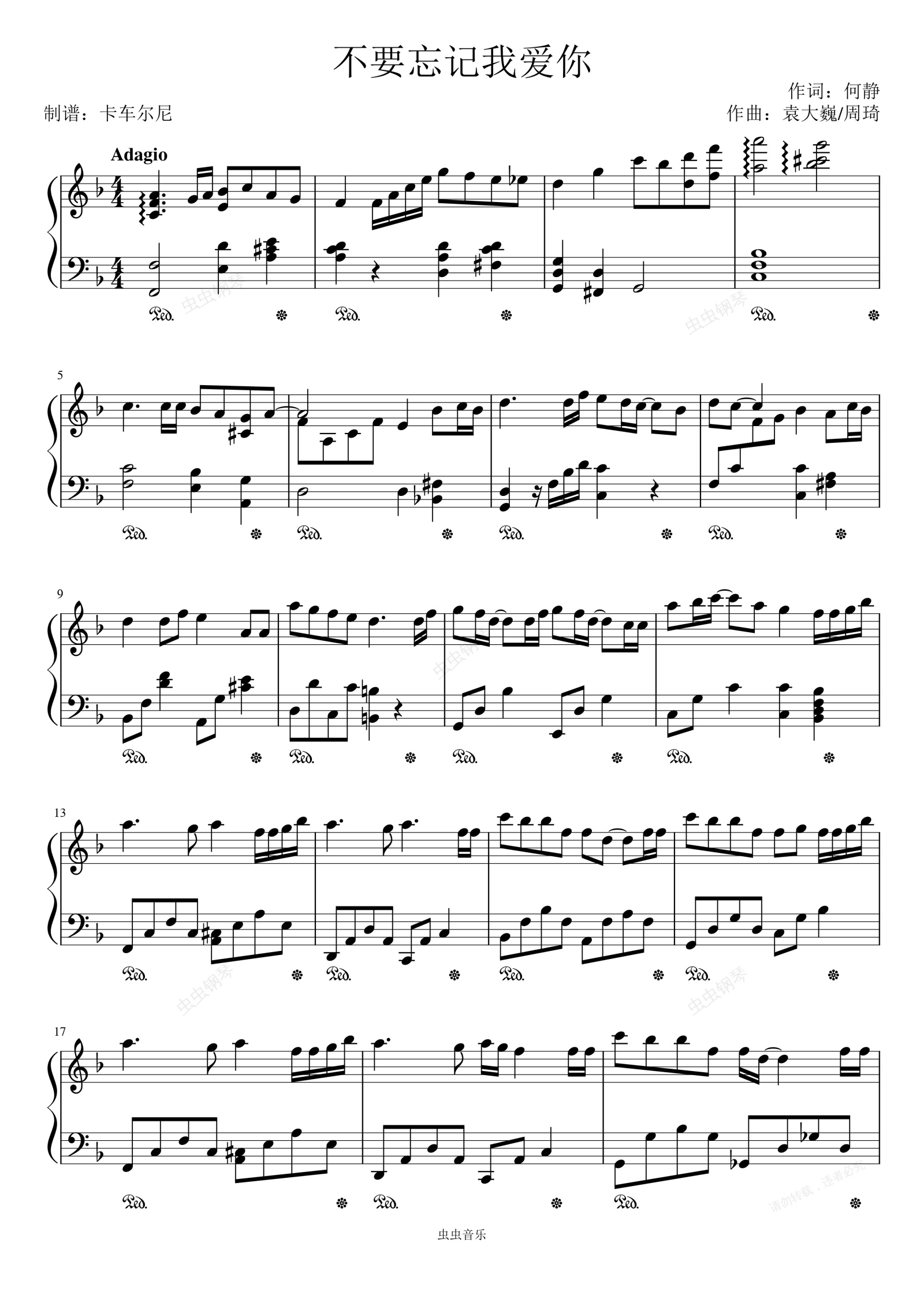 钢琴谱:不要忘记我爱你 精简版 电视剧《神犬小七》片尾曲
