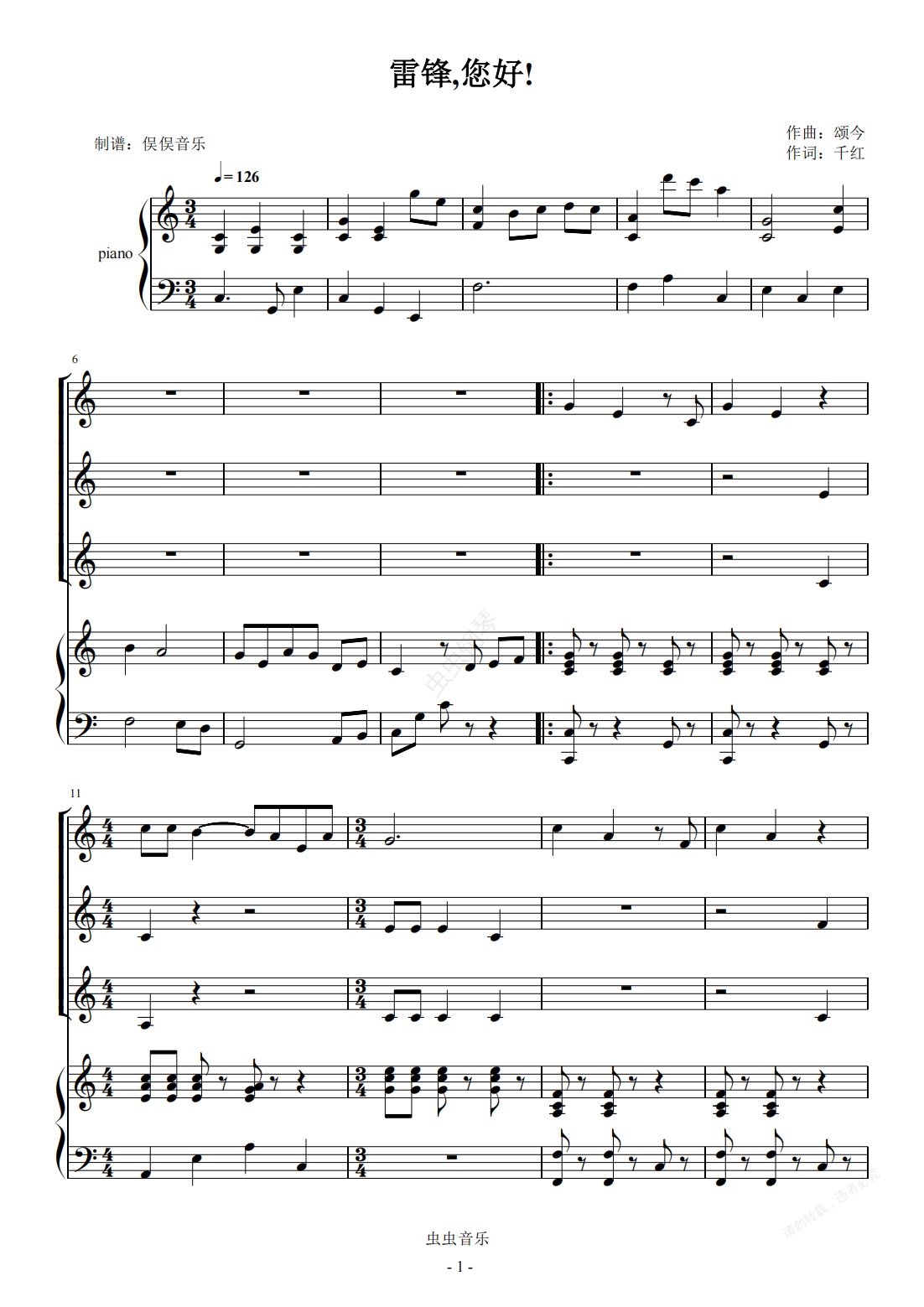 钢琴谱:迎国庆红歌 - 雷锋叔叔您好