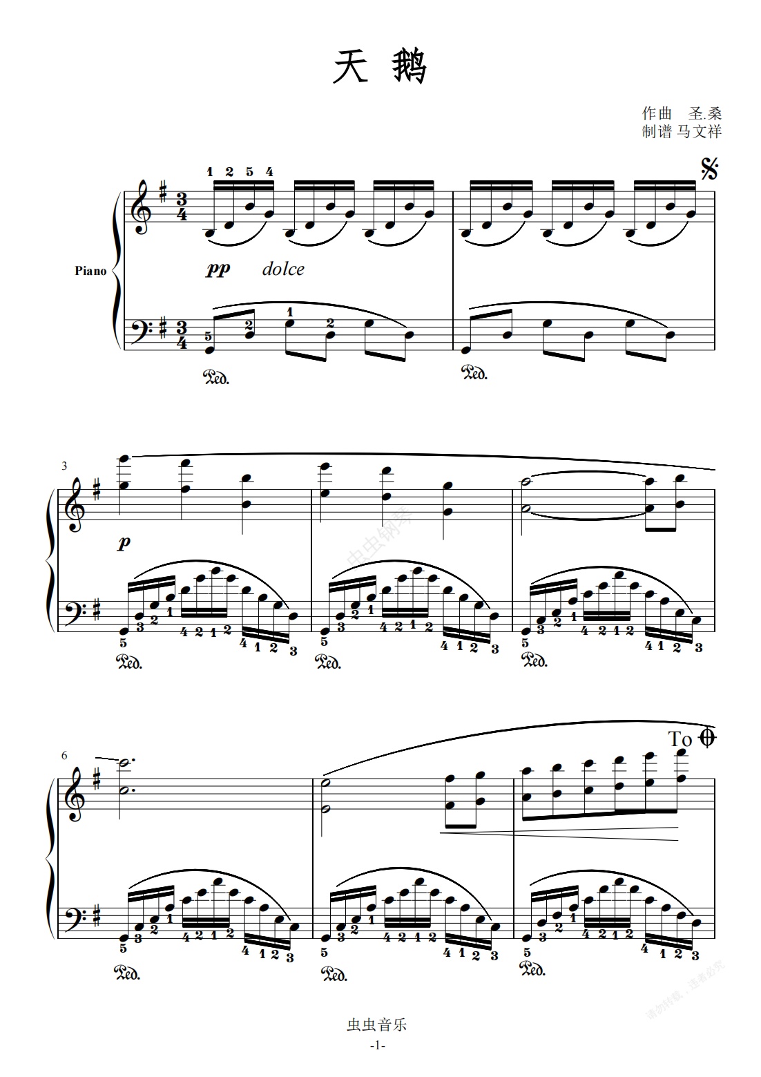 理查德·克莱德曼演奏版,大音符+详细指法。