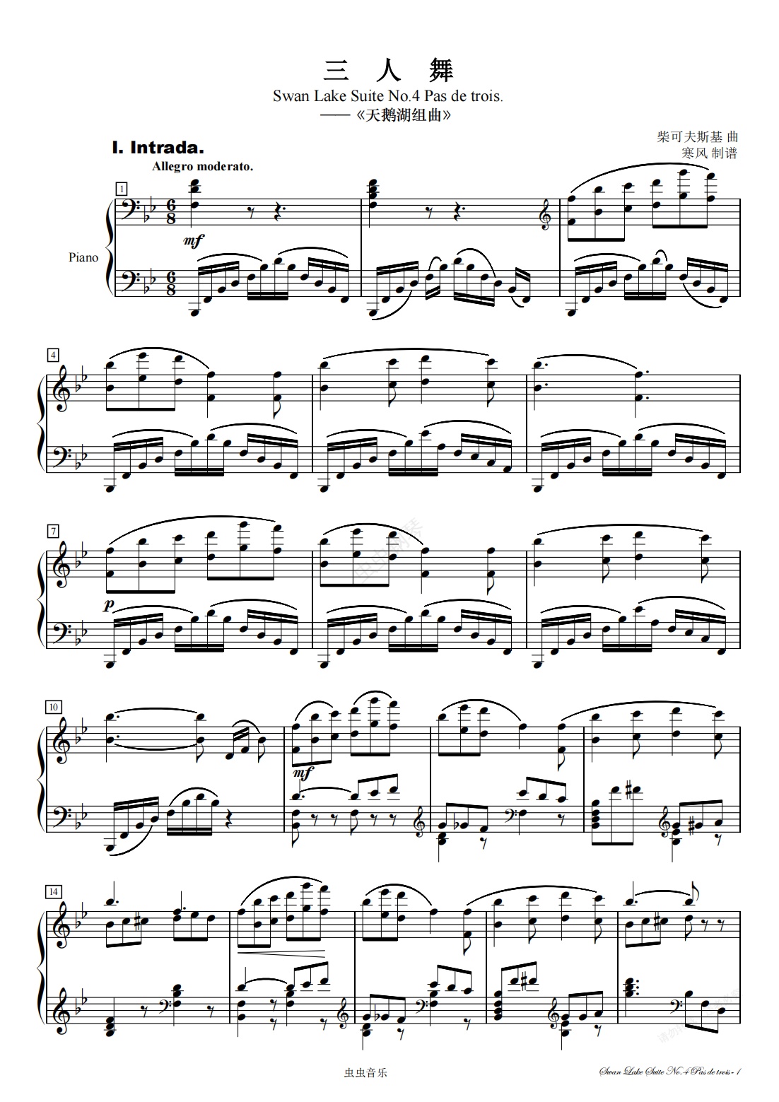 钢琴谱:天鹅湖组曲No.4-三人舞