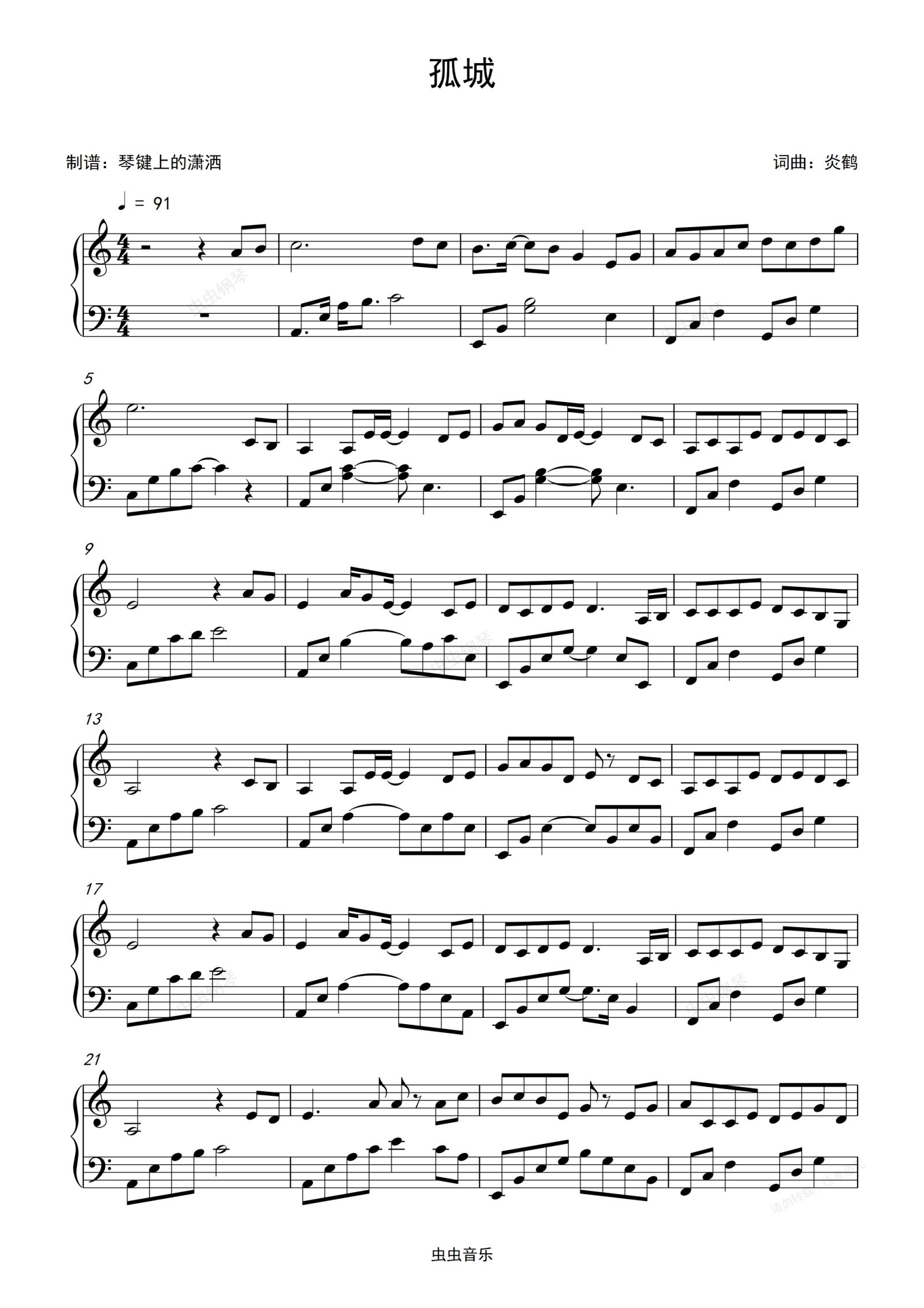 钢琴谱:《孤城》-洛先生-a小调完美独奏