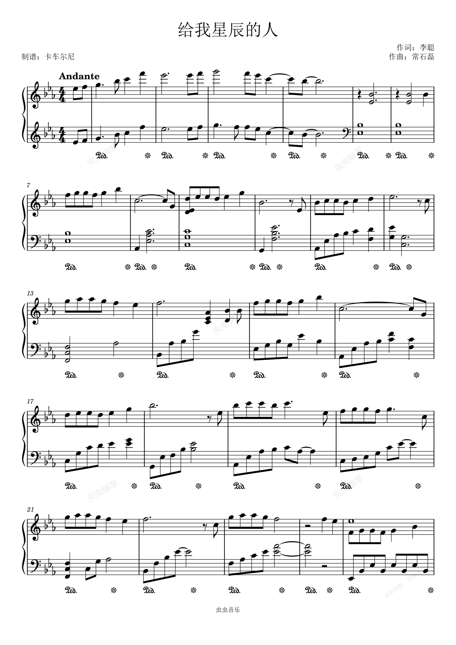 钢琴谱:《给我星辰的人》电影《我和我的父辈》片头曲