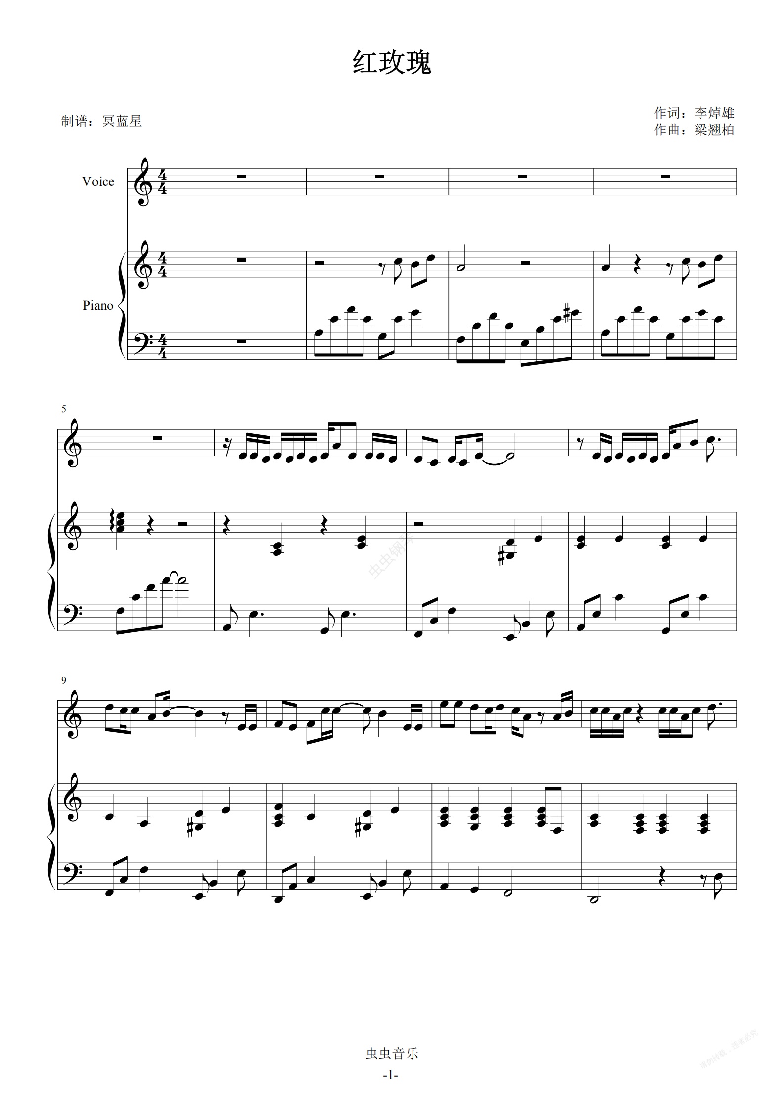 钢琴谱:红玫瑰-陈奕迅-伴奏谱
