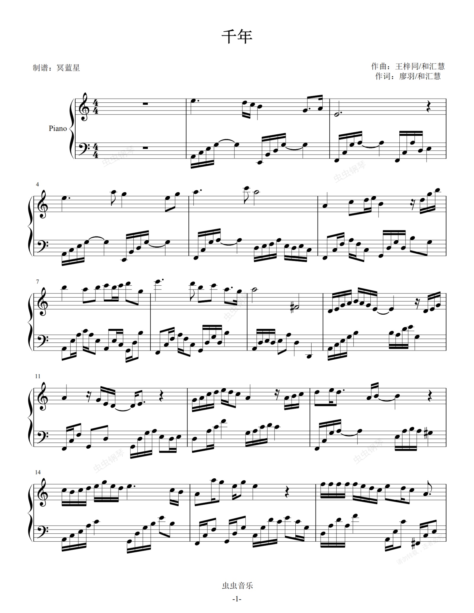 钢琴谱:千年-吉克隽逸&金志文-演奏谱