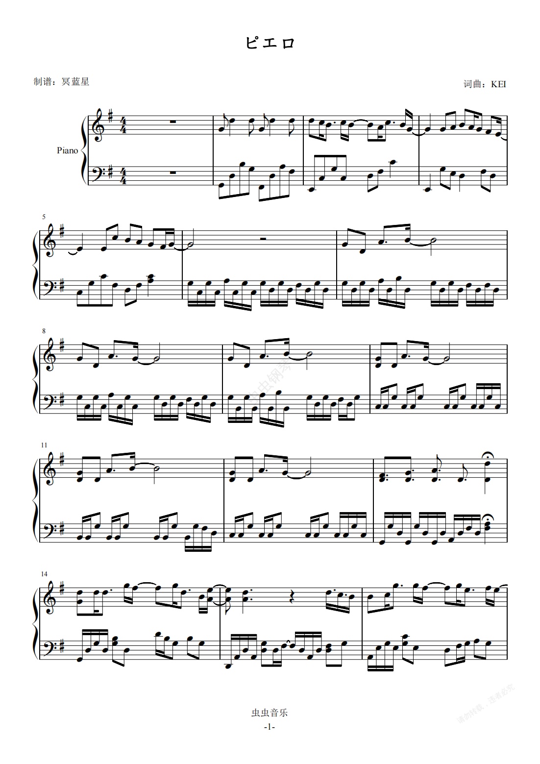 钢琴谱:鹿乃 - ピエロ-演奏谱