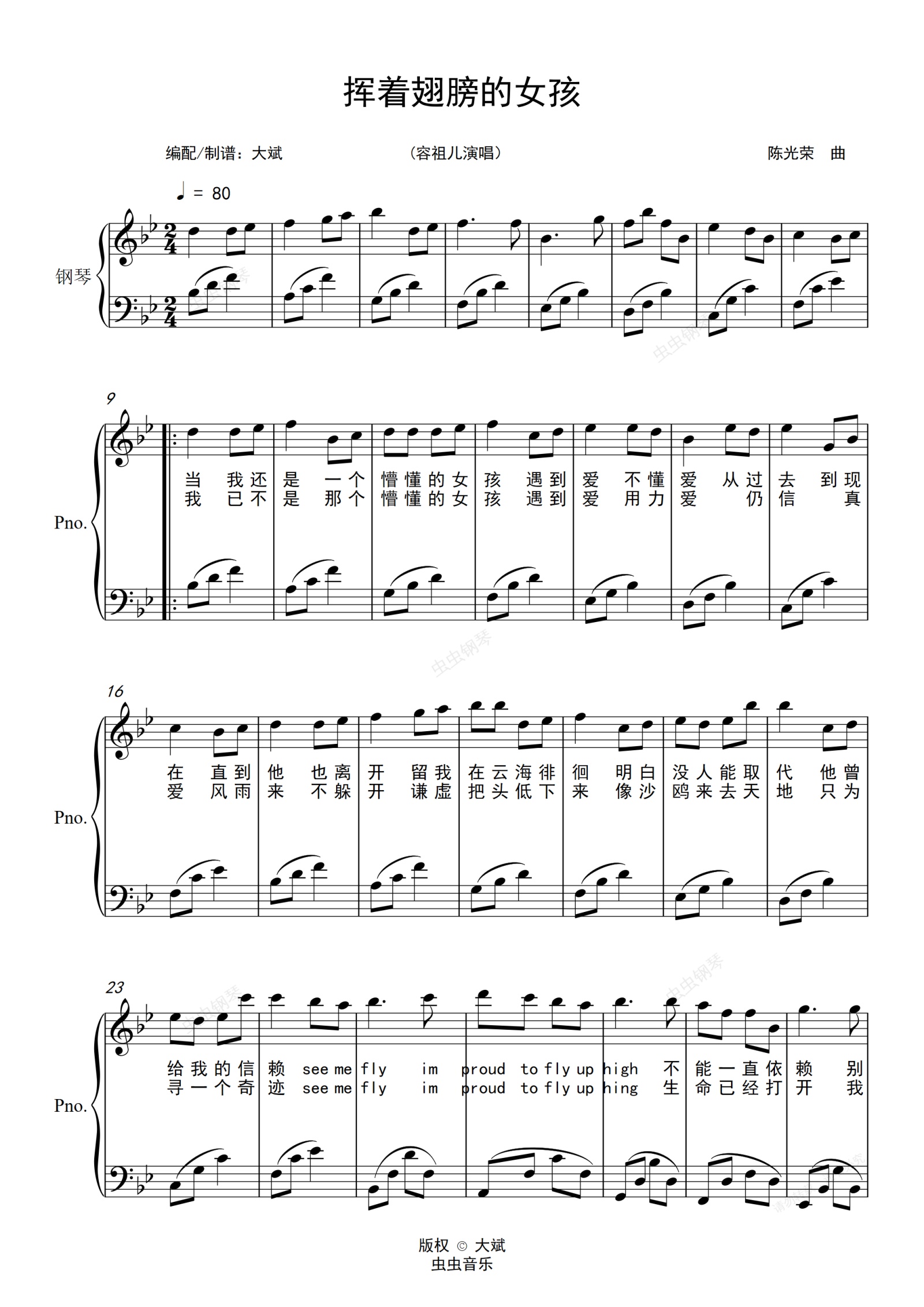 钢琴谱:挥着翅膀的女孩(原调简易弹唱)
