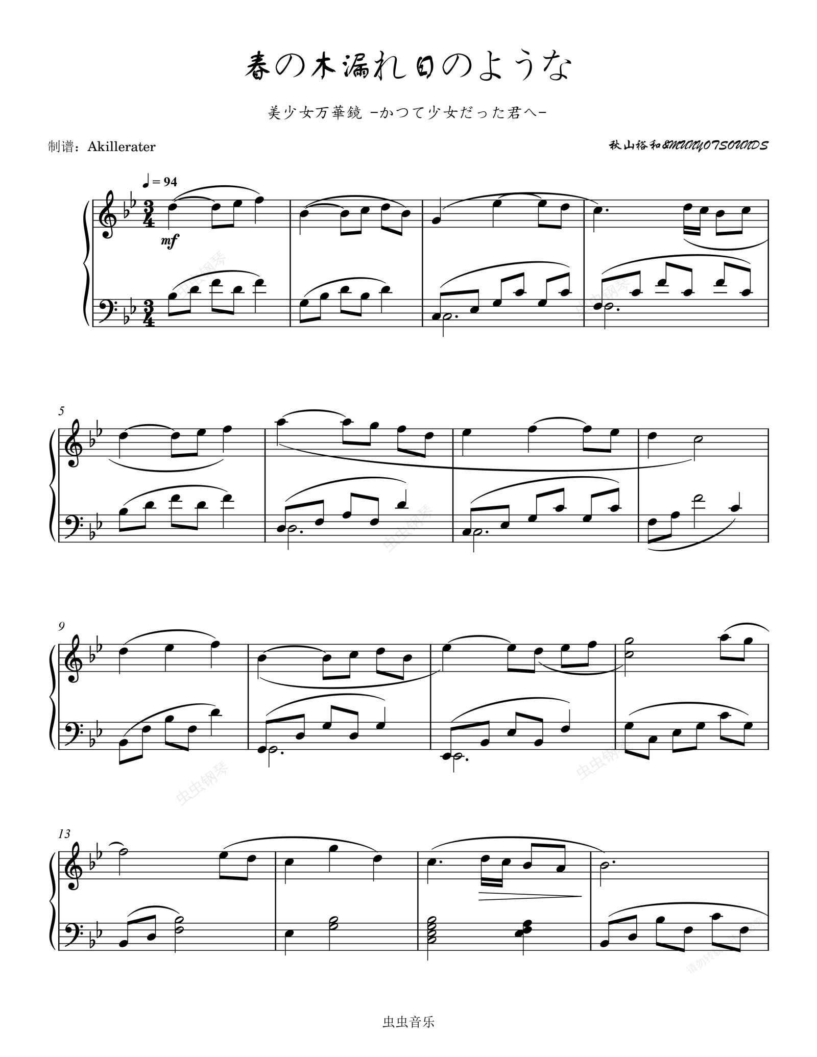 钢琴谱:春の木漏れ日のような(仿若春日林叶斑驳之影《美少女万华镜 - 献给曾是少女的你》)