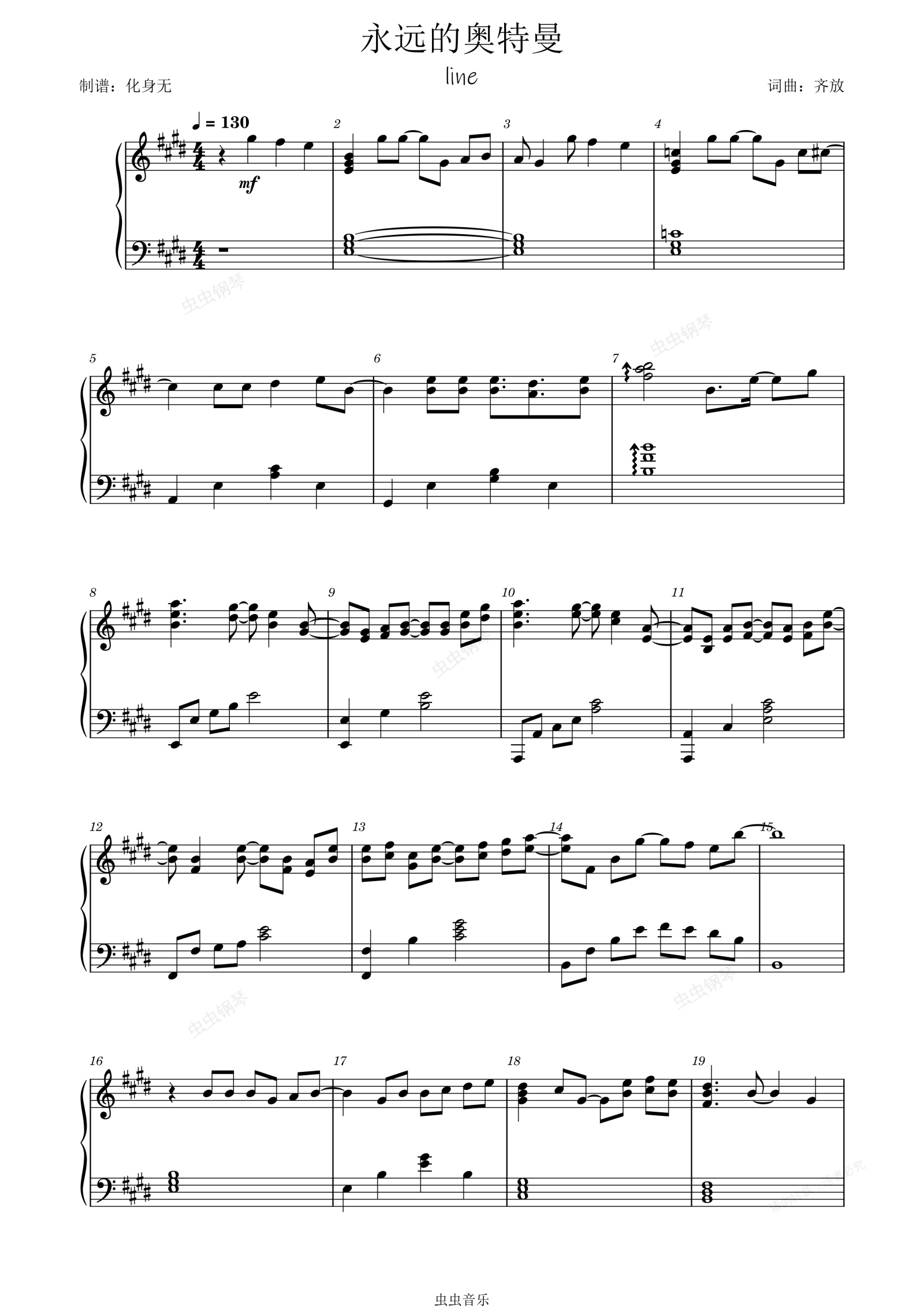 钢琴谱:永远的奥特曼