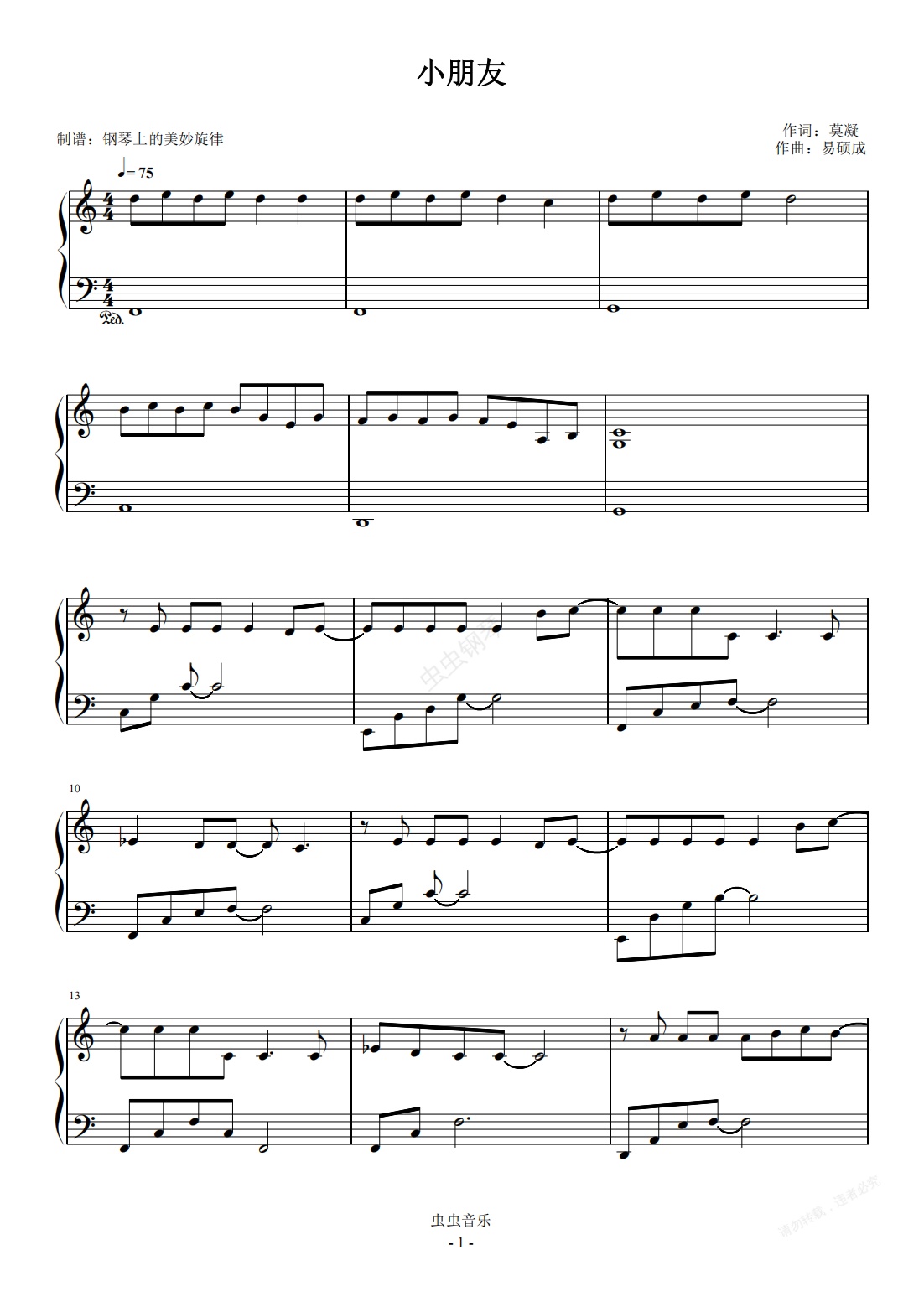 钢琴谱:小朋友  C调简易版 任然