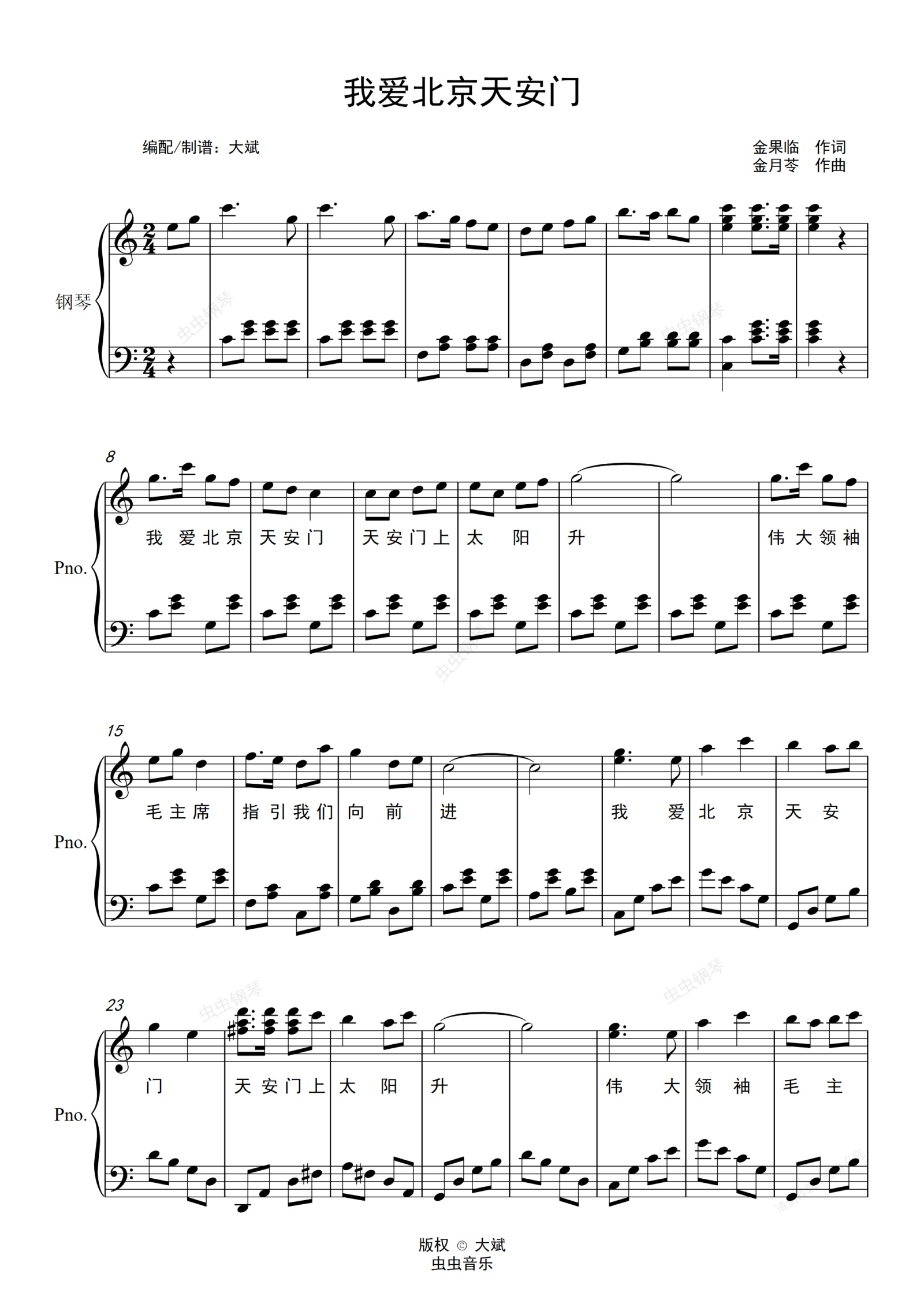 钢琴谱:我爱北京天安门-完美C调弹唱