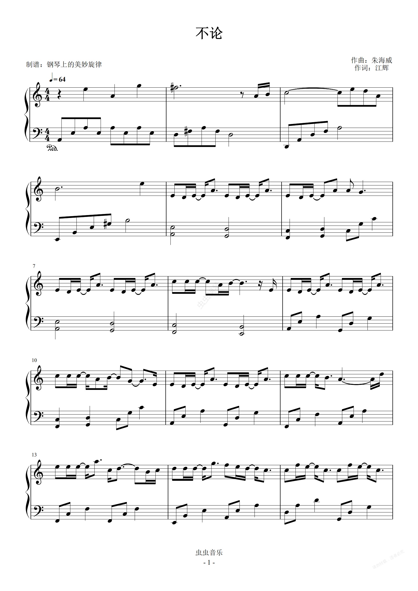 钢琴谱:不论 C调简易版 阿YueYue