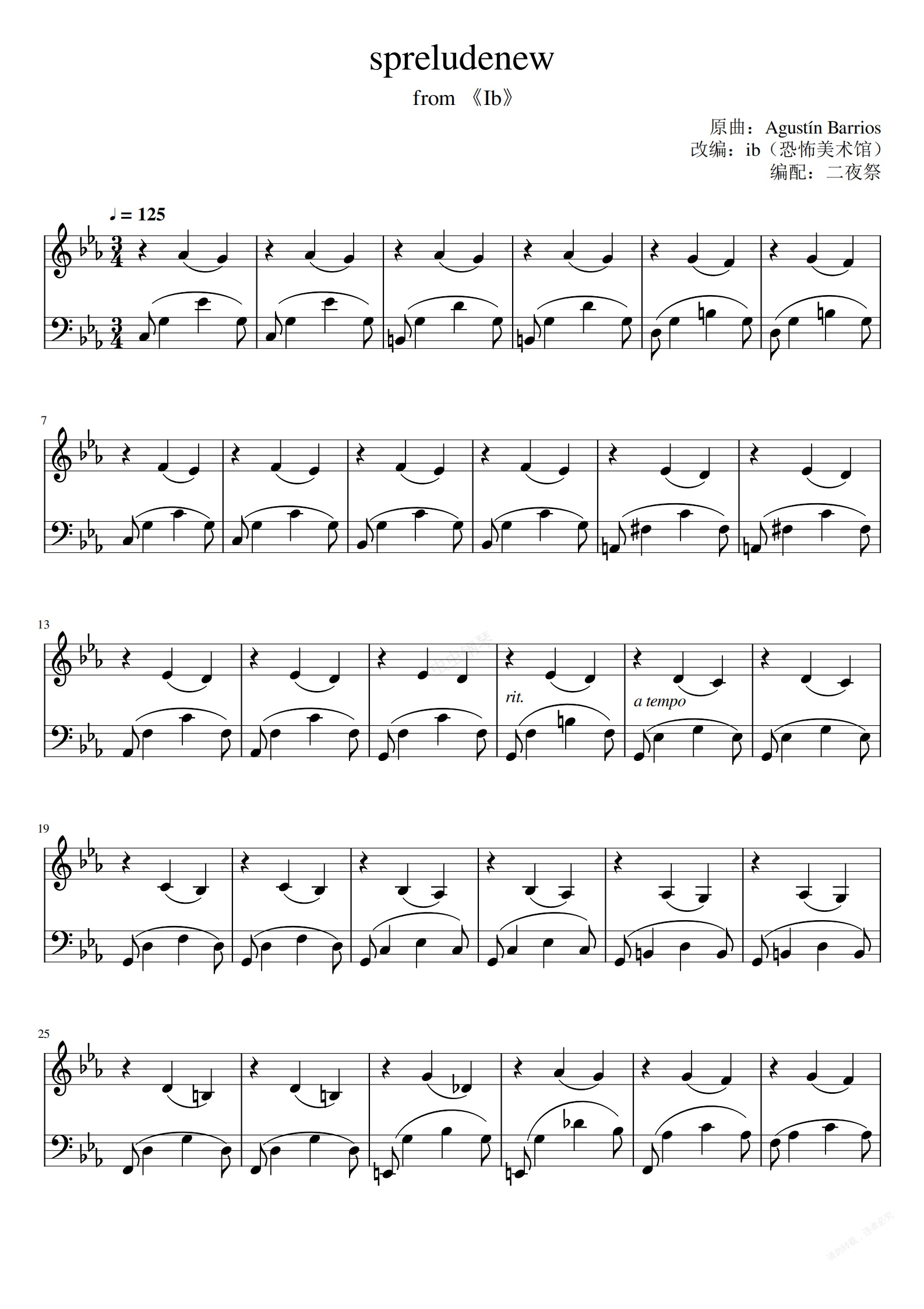 钢琴谱:【Ib / 恐怖美术馆】spreludenew