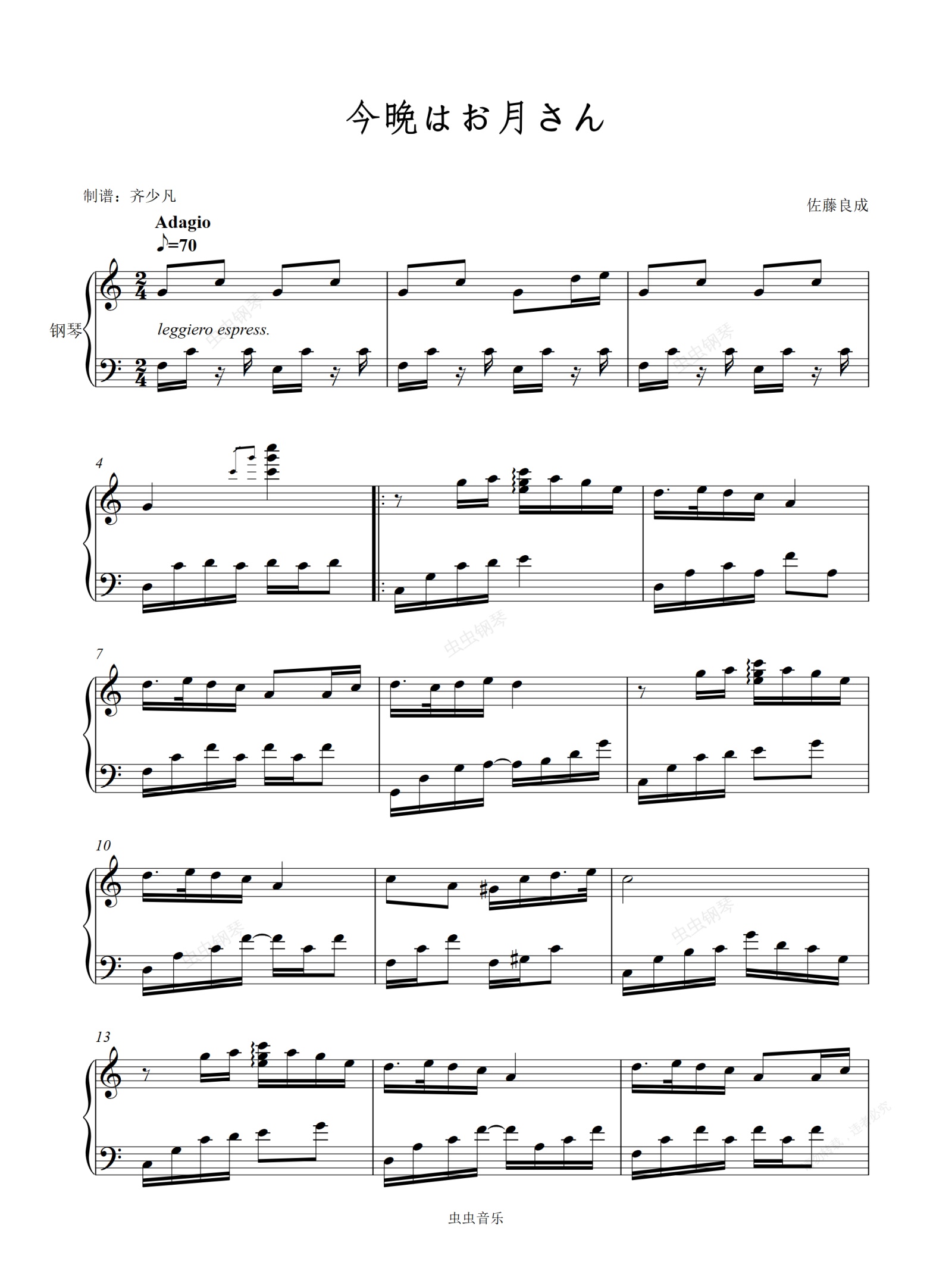 钢琴谱:月儿晚上好 今晩はお月さん Humbert Humbert