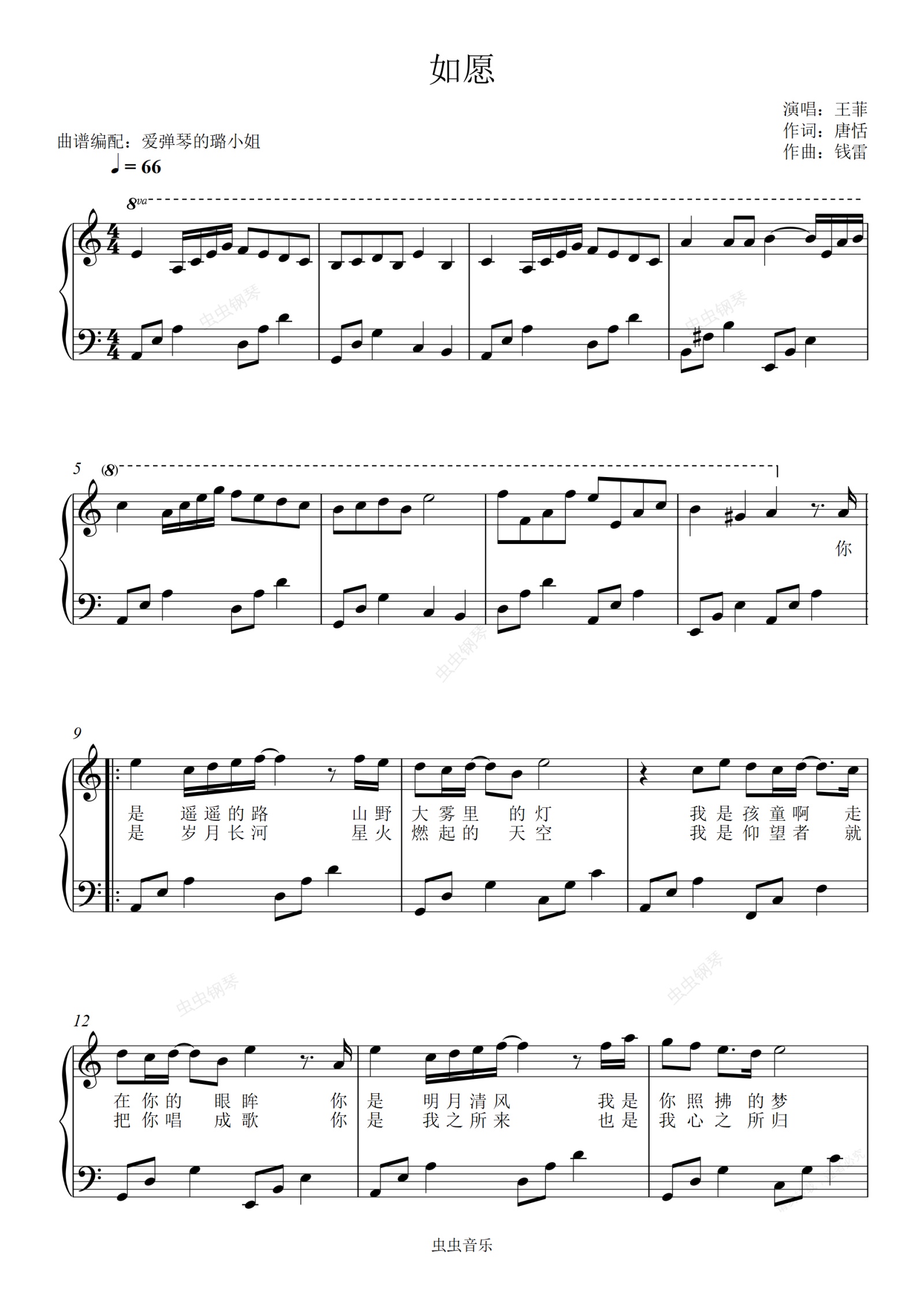 钢琴谱:如愿 - 《我和我的父辈》电影推广曲 - 好听易弹简单版 - 附歌词