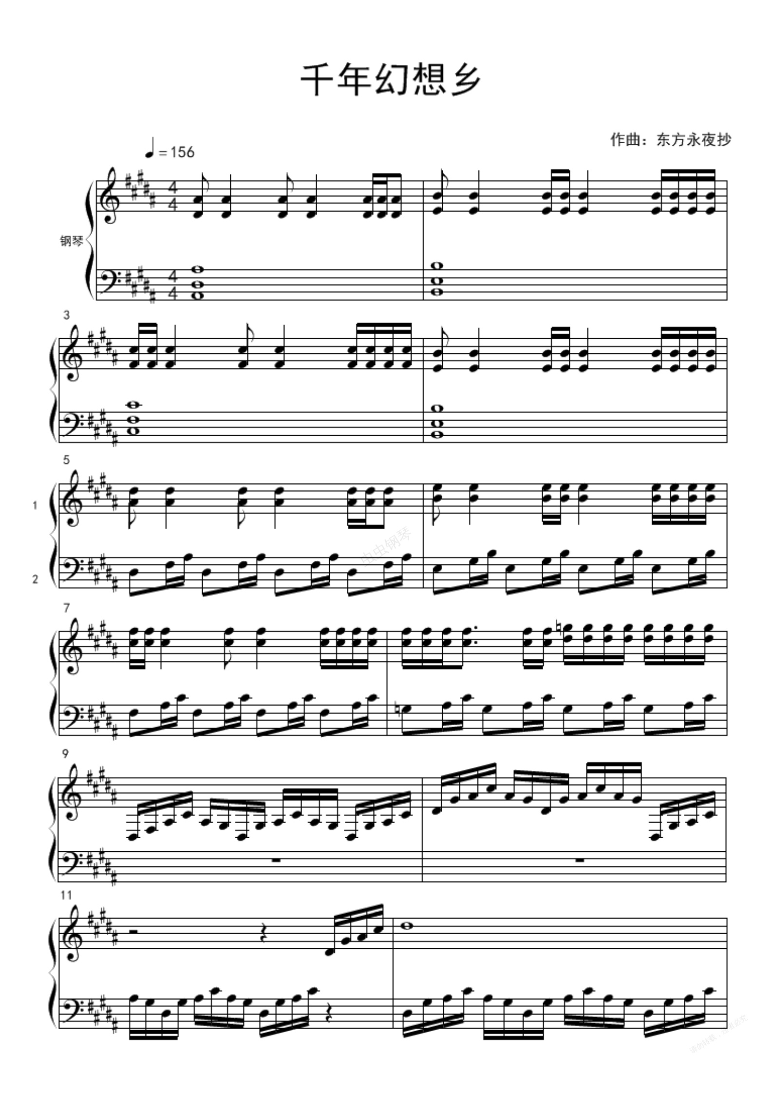 钢琴谱:千年幻想乡-东方永夜抄 history of the moon