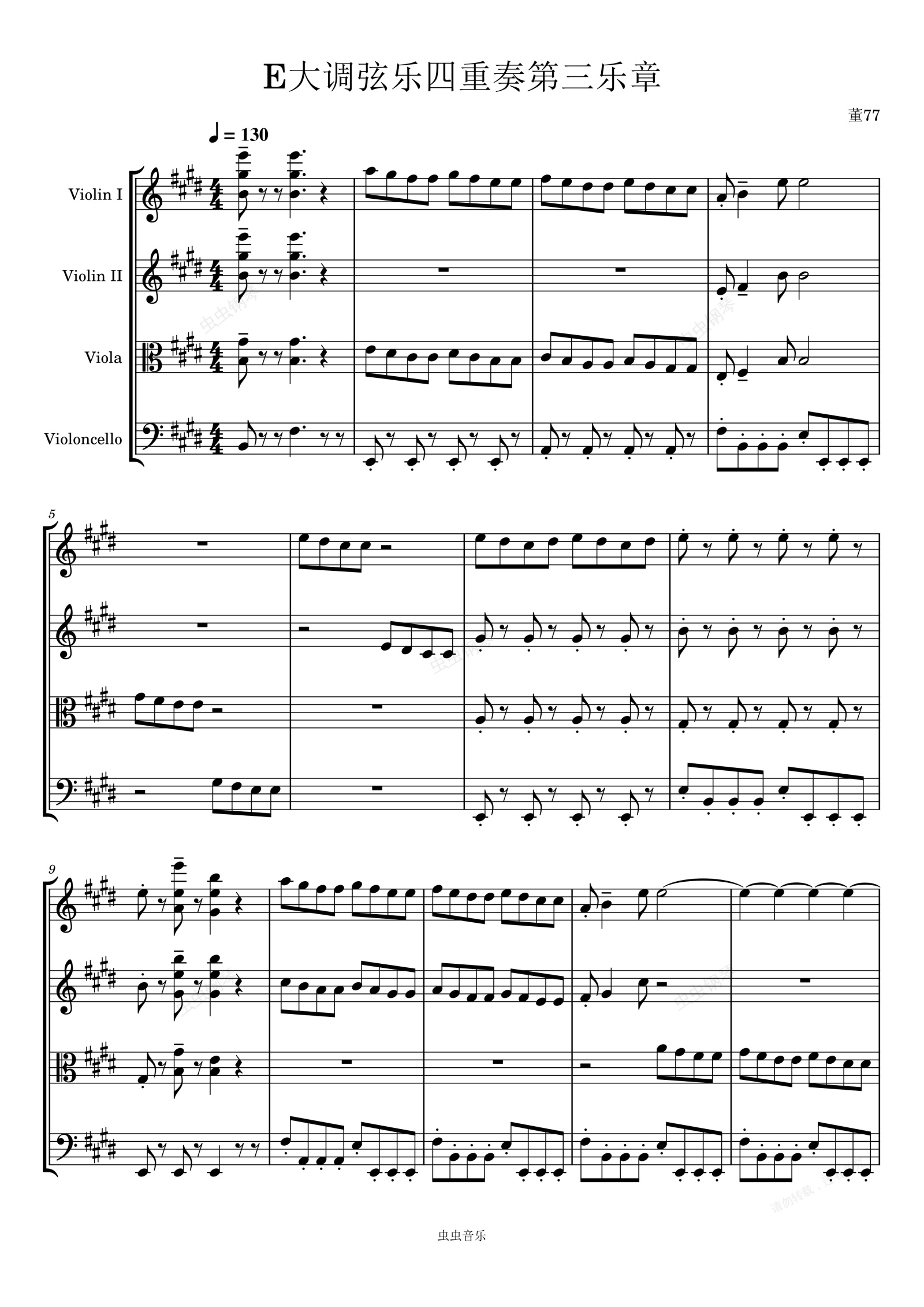 钢琴谱:E大调弦乐四重奏第三乐章