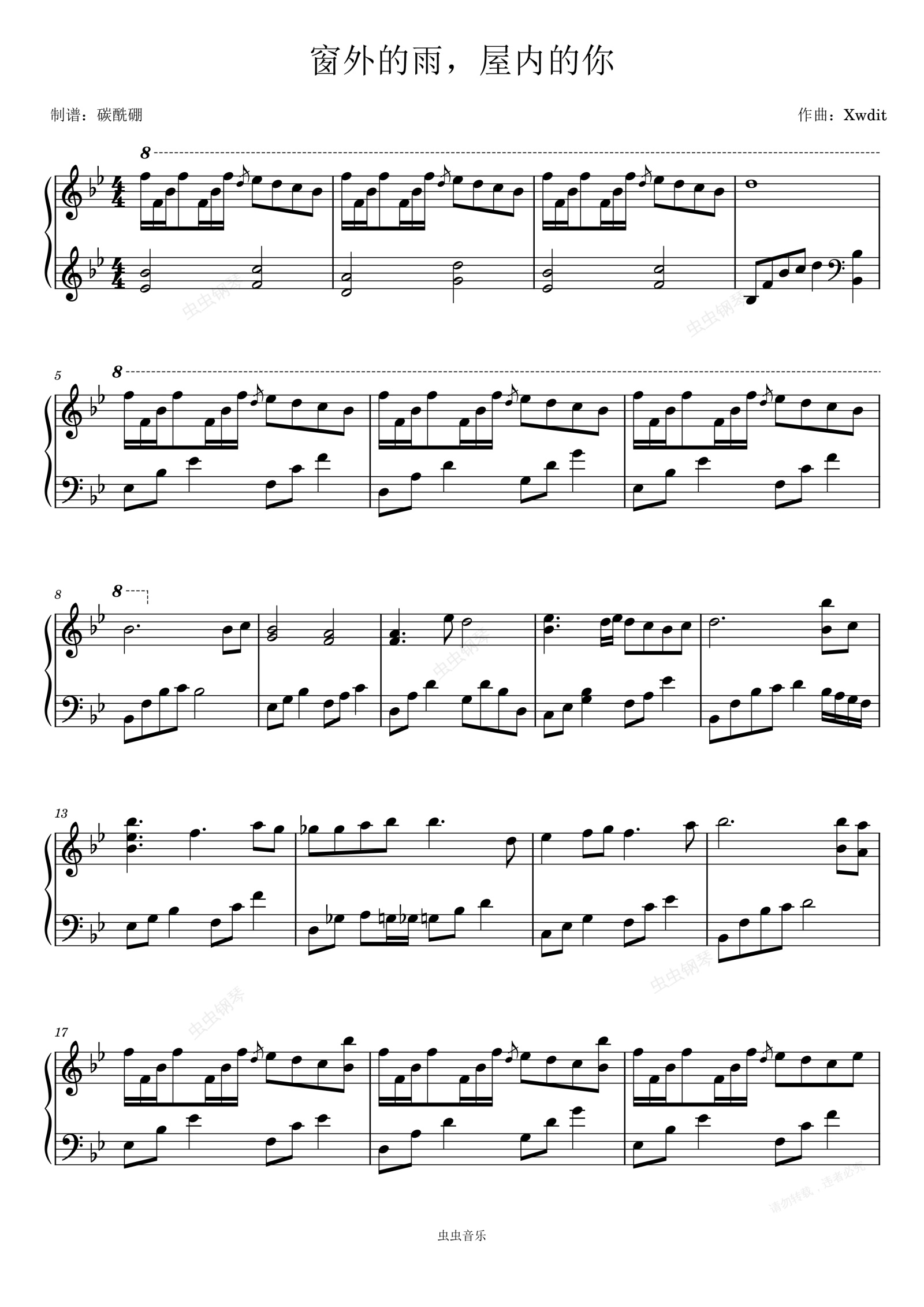 钢琴谱:Xwdit-窗外的雨,屋内的你