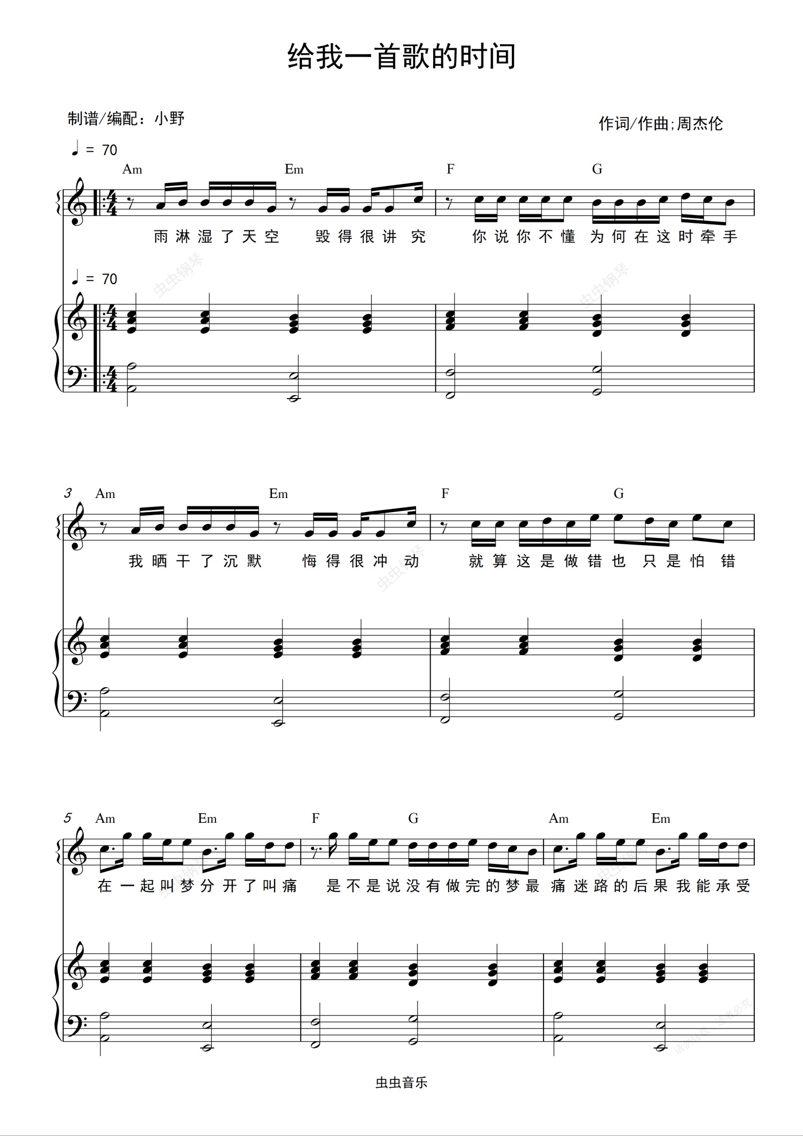 钢琴谱:给我一首歌的时间(和弦弹唱版)