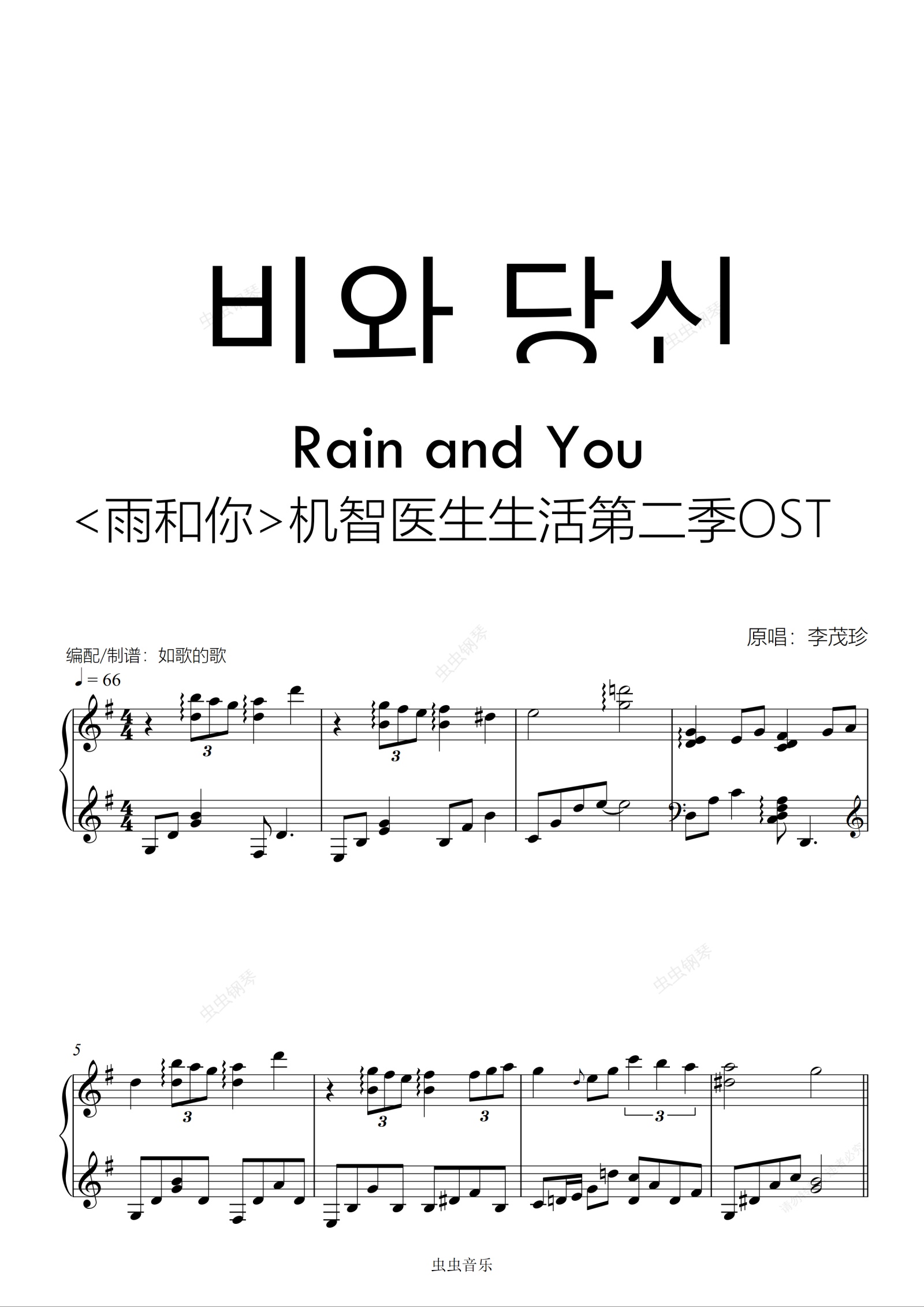 钢琴谱:비와 당신《雨和你》机智医生生活OST纯钢琴