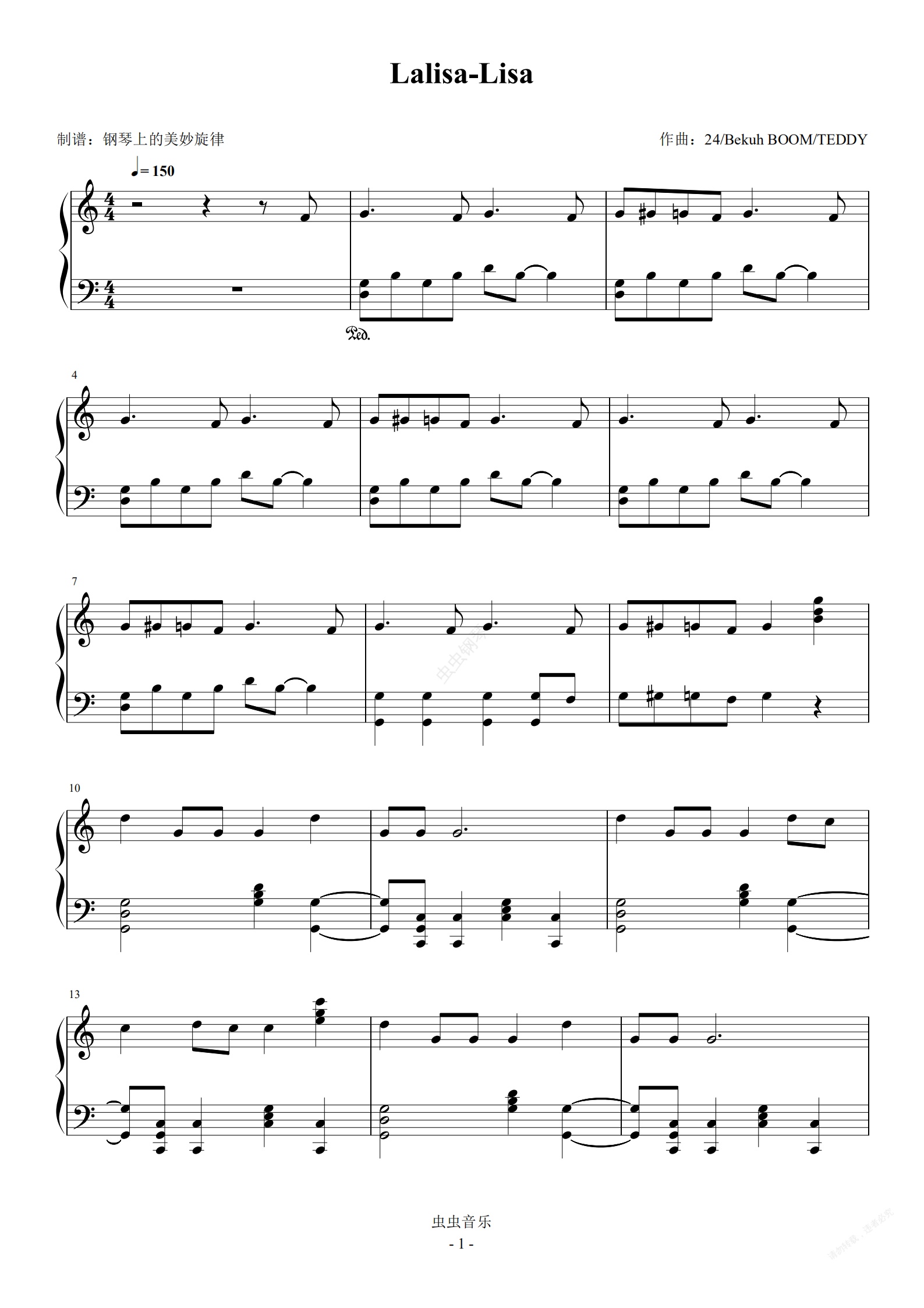 钢琴谱:Lisa LALISA C调经典流行 Lisa
