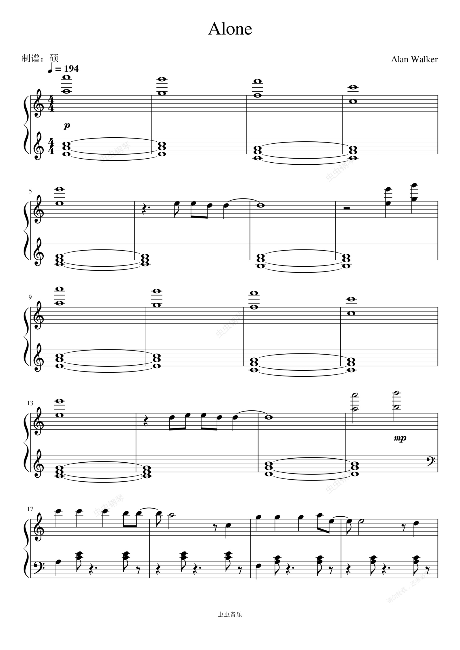 钢琴谱:Alone